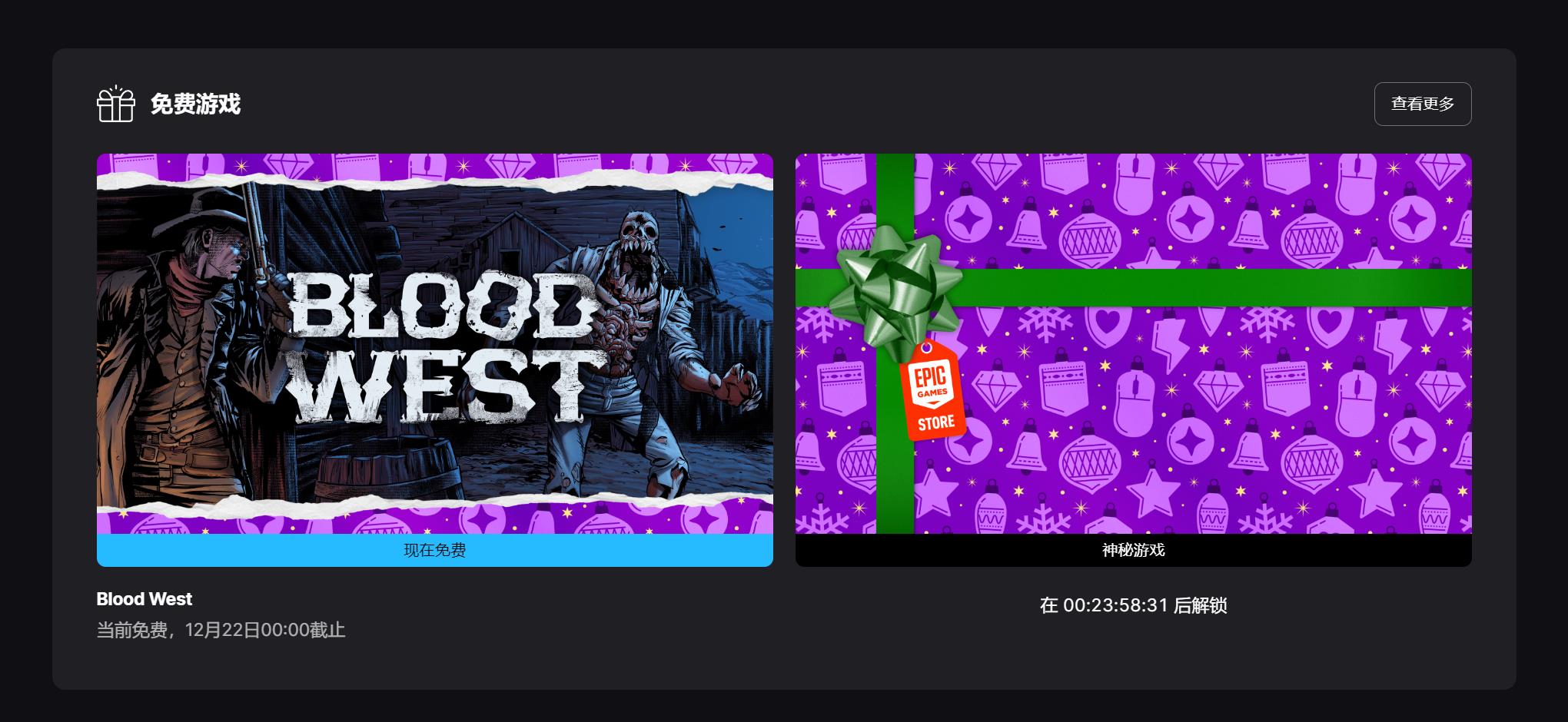 【Epic喜+1】Epic商店连续“喜+1”第4弹揭晓!《浴血西部(Blood West)》现已可在Epic商店中免费领取,12月22日00:00截止(限时24小时),领取后永久入库。