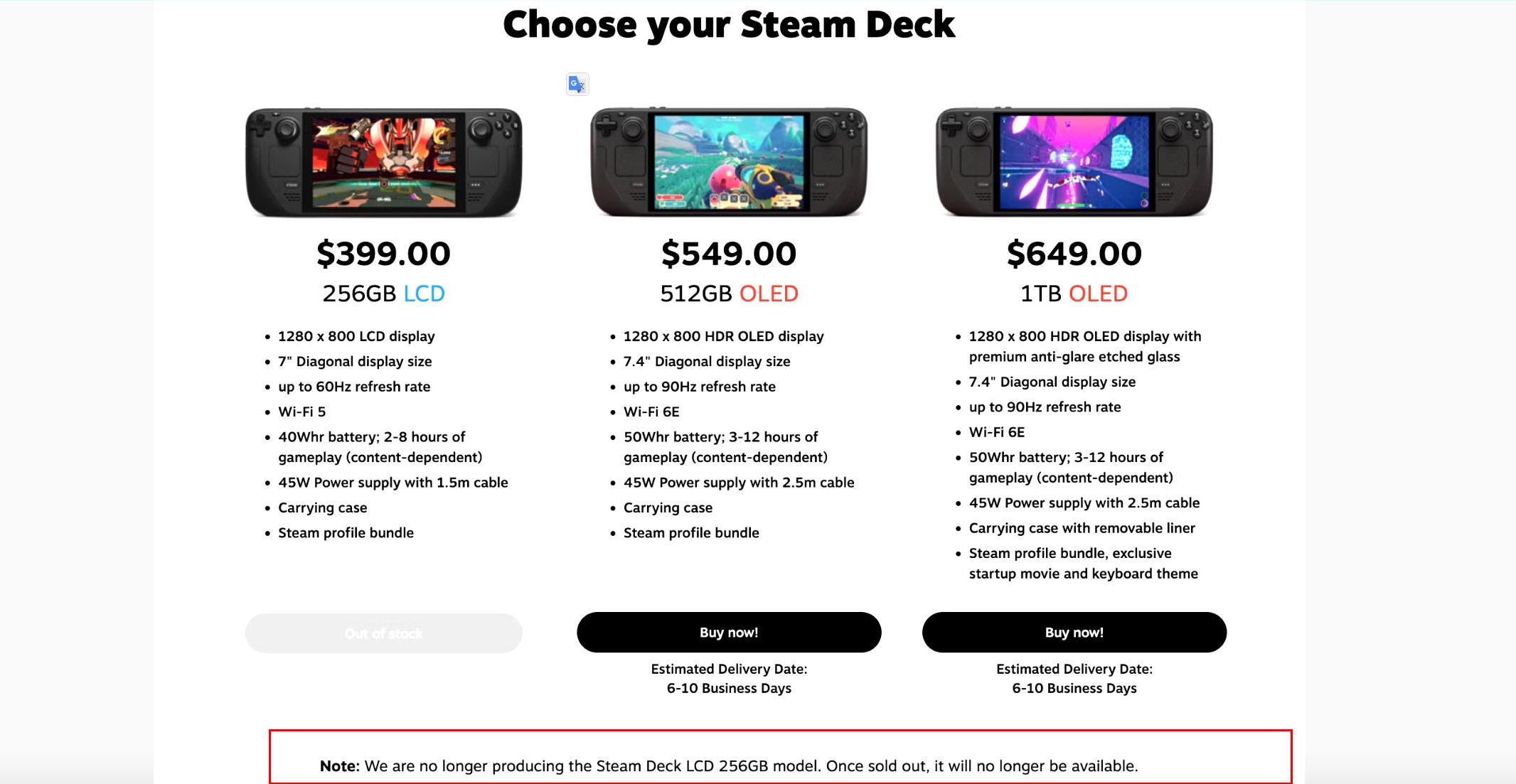 【LCD版Steam Deck在部分地区停产并售罄】根据Steam Deck官网上的信息显示,这款掌机的LCD版(256GB型号)已经停产。V社在产品标注中写道“该机型售完即止,不再供货” 。根据The Verge等媒体报道,美国地区已经售罄。他们已联系官方征求说明,但目前尚未收到回复。