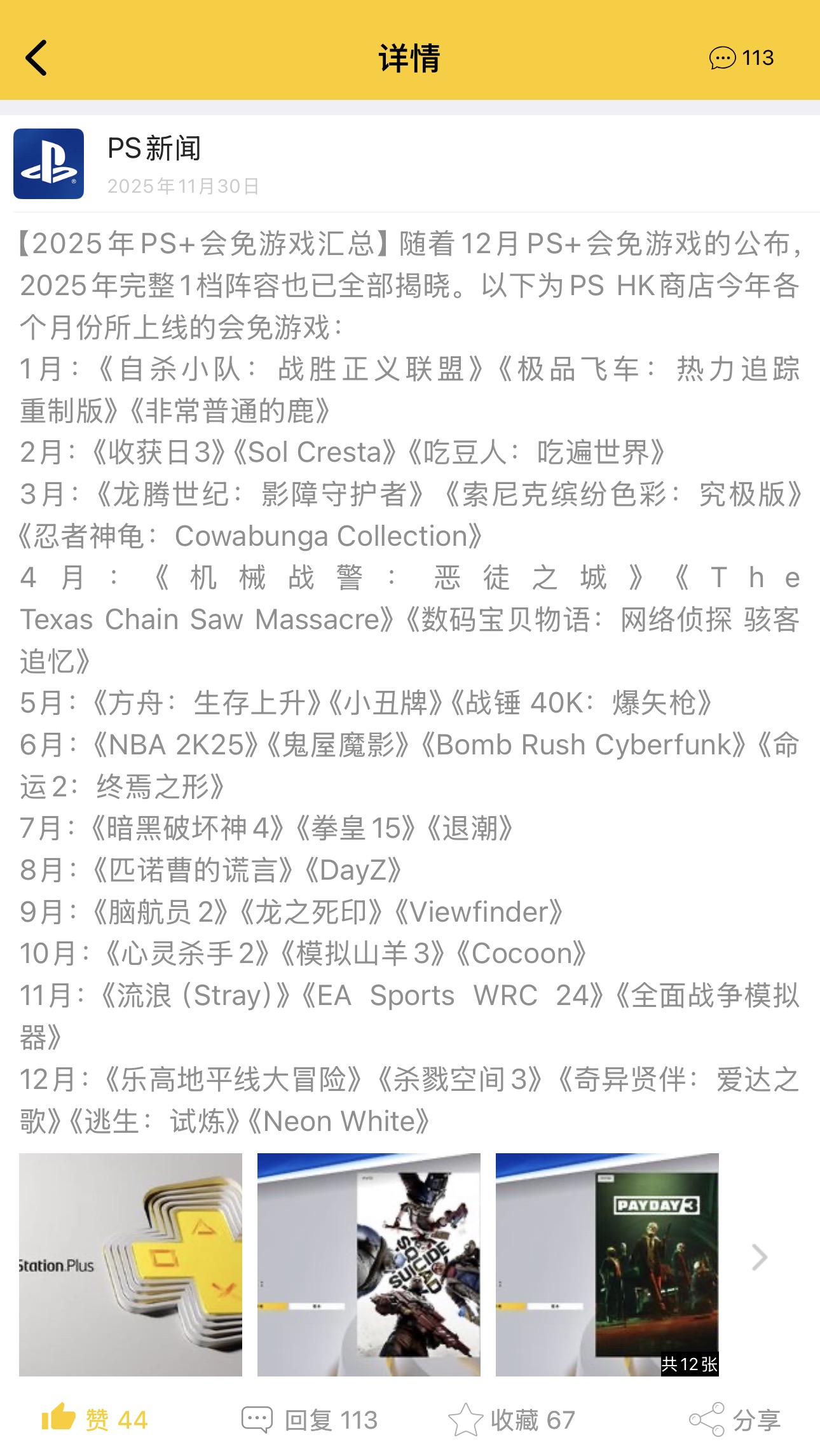 【外媒统计2025年PS+会免游戏总价值超1500美元】我们在上月末为柄友们总结了2025年PS+会免阵容(详见图2/HK商店)。近日,PushSquare、GameRant等海外游戏媒体对会免作品进行了统计(对象为欧美地区PS商店),据悉SIE今年向会员玩家送出的游戏总价值超过1500美元。