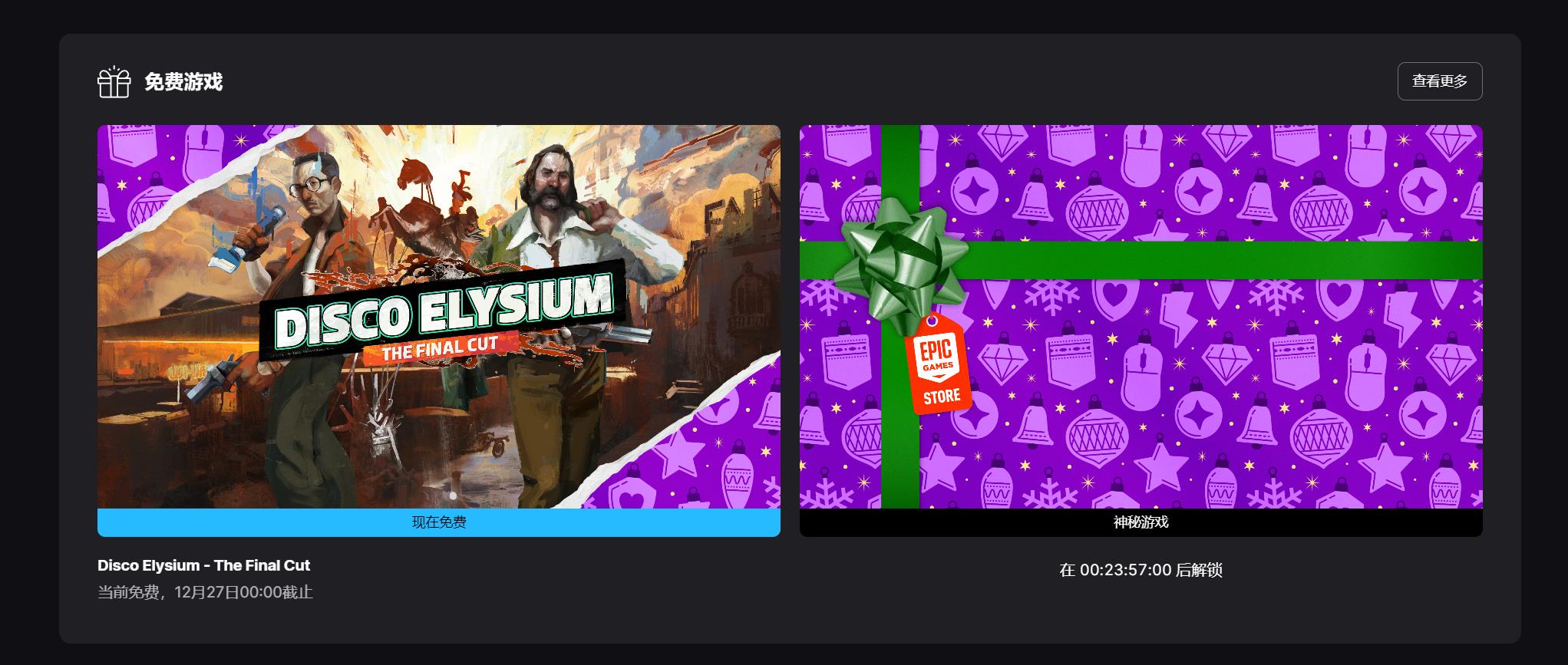 【Epic喜+1】Epic商店连续“喜+1”第9弹揭晓!《极乐迪斯科:最终剪辑版》现已可在Epic商店中免费领取,12月27日00:00截止(限时24小时),领取后永久入库。