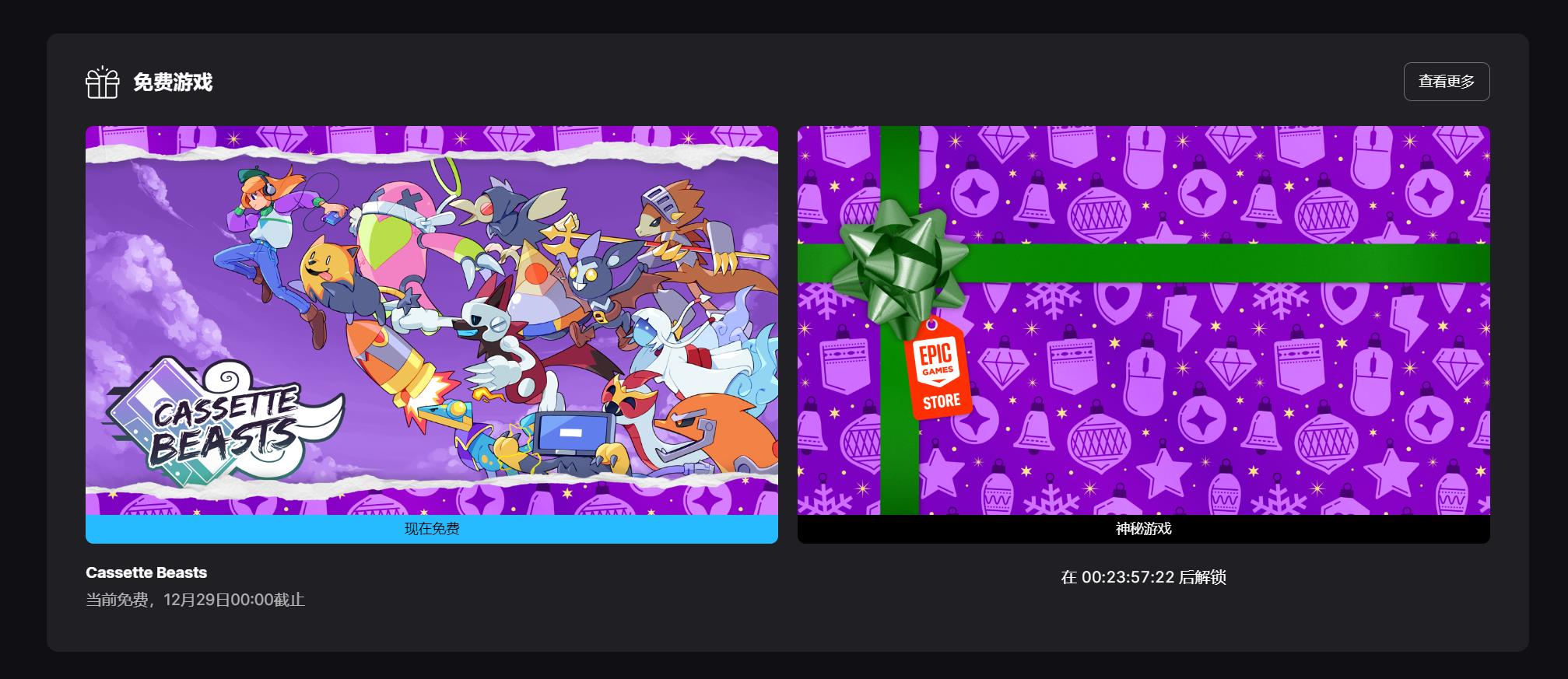 【Epic喜+1】Epic商店连续“喜+1”第11弹揭晓!开放世界角色扮演游戏《磁带妖怪(Cassette Beasts)》现已可在Epic商店中免费领取,12月29日00:00截止(限时24小时),领取后永久入库。