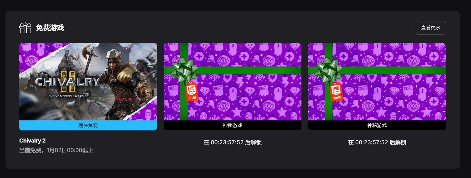 【Epic喜+1】Epic商店连续“喜+1”第15弹揭晓!《骑士精神2(Chivalry 2)》现已可在Epic商店中免费领取,2026年1月2日00:00截止(限时24小时),领取后永久入库。