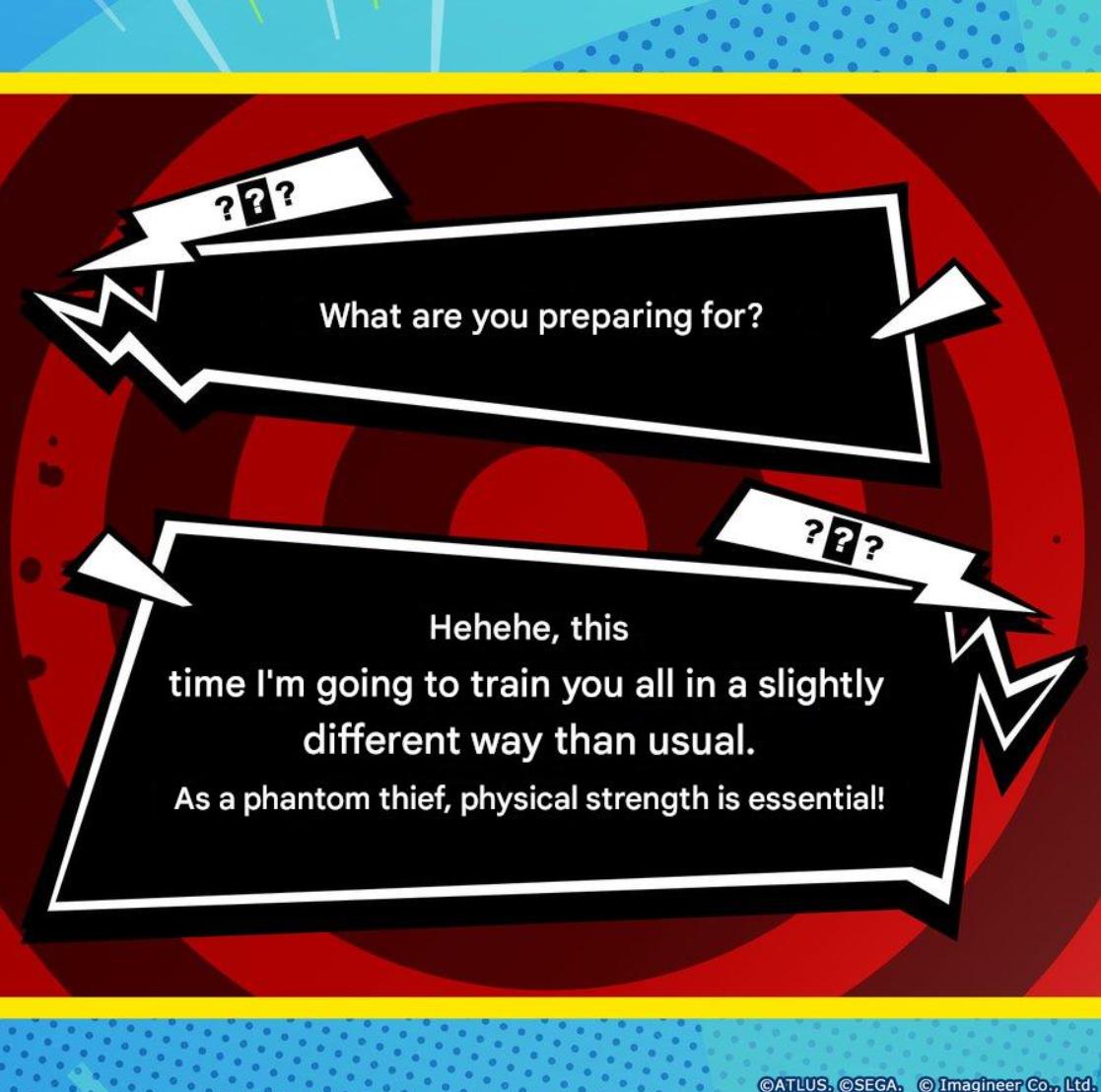 ???:这次我打算走一条和以往稍微不同的路线,来锻炼一下大家。毕竟要当怪盗,体力也是必不可少的啊!”