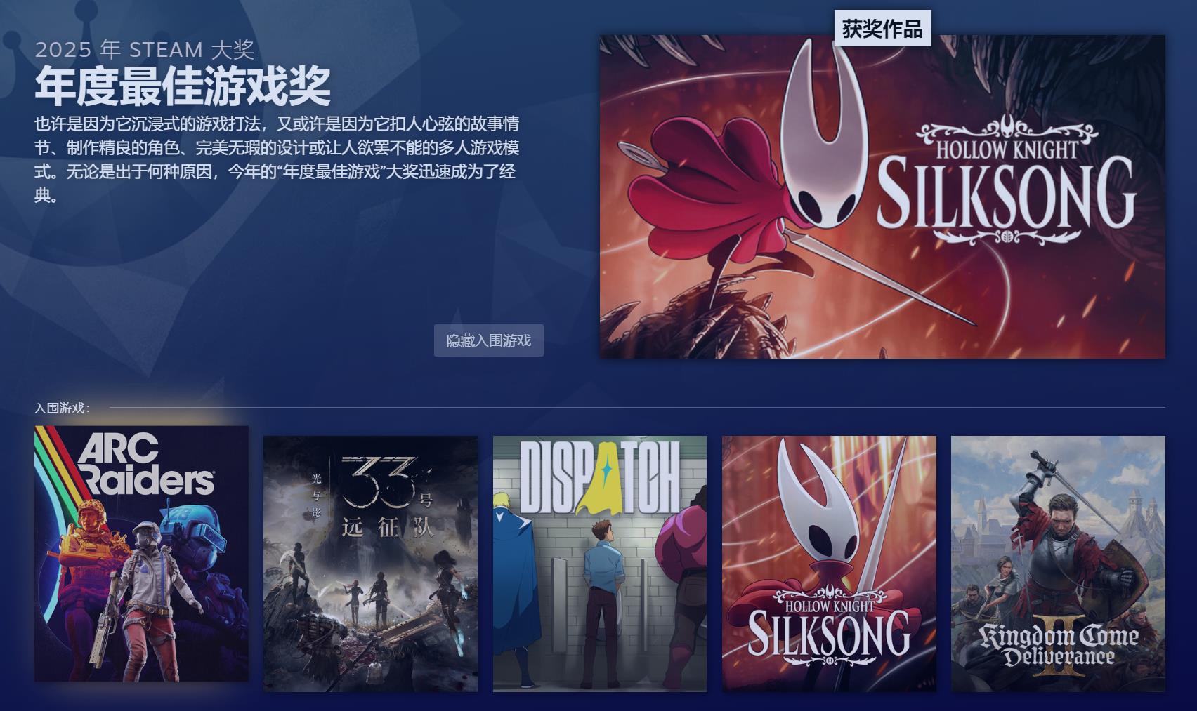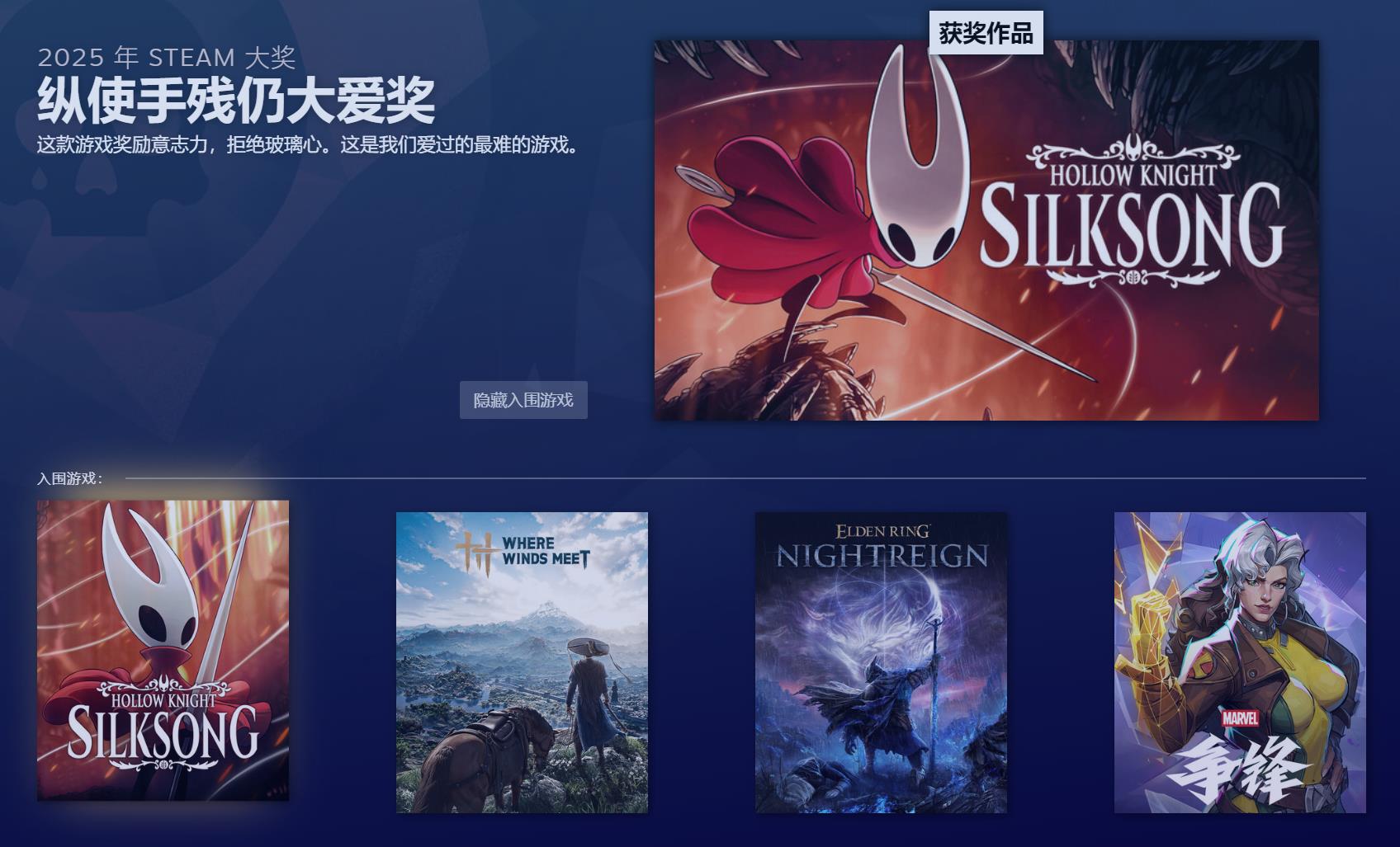 2025年Steam大奖结果揭晓!《空洞骑士:丝之歌》斩获年度最佳