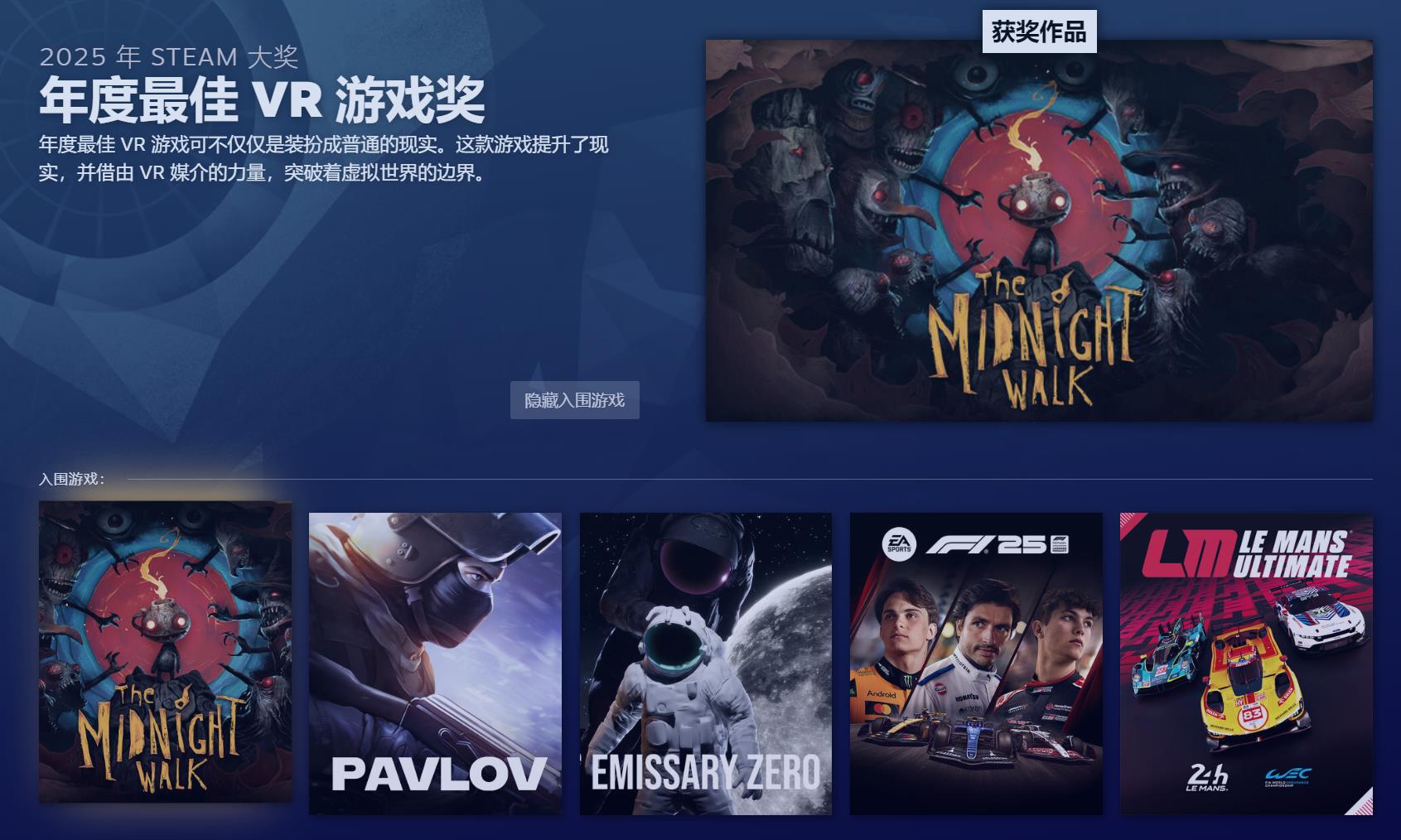 年度最佳VR游戏奖:《午夜漫步》