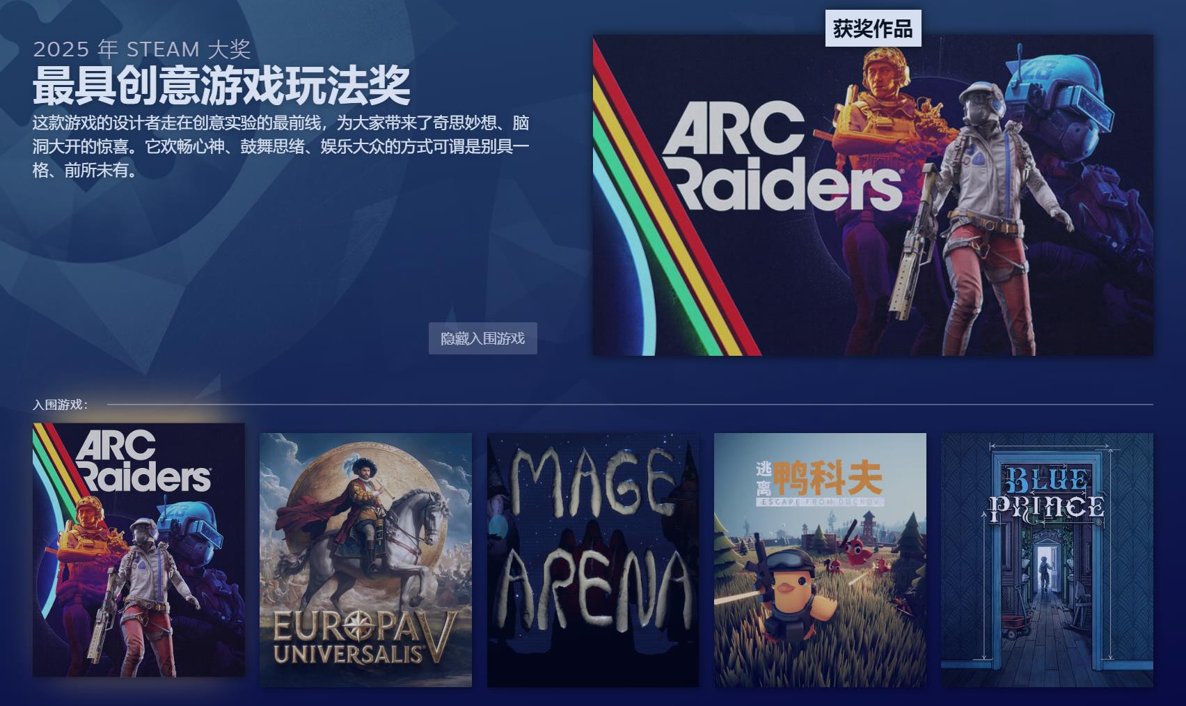 【2025年Steam大奖结果揭晓!《空洞骑士:丝之歌》斩获年度最佳】V社今日公布了2025年Steam大奖的最终结果。该奖由玩家投票选出,其中《空洞骑士:丝之歌》在与《ARC Raiders》《光与影:33号远征队》《超英派遣中心》《天国:拯救2》的竞争中脱颖而出,拿下年度最佳。具体名单如下: