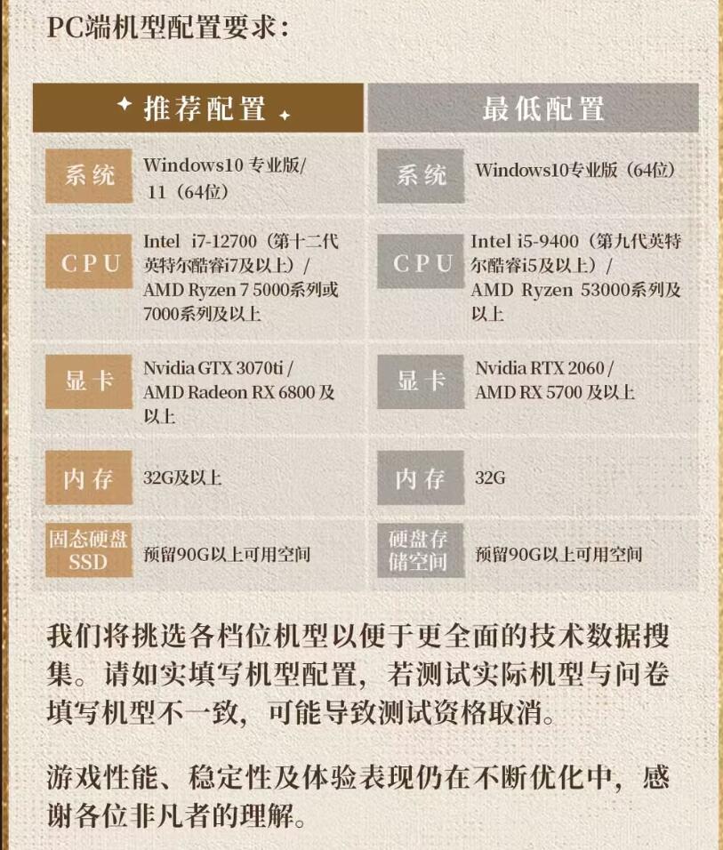 其中许多玩家对最低配置内存要求也要32G感到意外,而在官方FAQ中也对此次测试的性质进行了说明,据悉此次测试为技术性测试,游戏尚在开发阶段,仍存在诸多方面的内容需要进行深入优化;而在配置需求方面,目前游戏性能、稳定性以及体验表现均还在不断优化中。因此能看出此次团队希望通过汇集玩家们更全面、高性能硬件下的运行数据,为后续PC平台的优化提供更细致的依据。