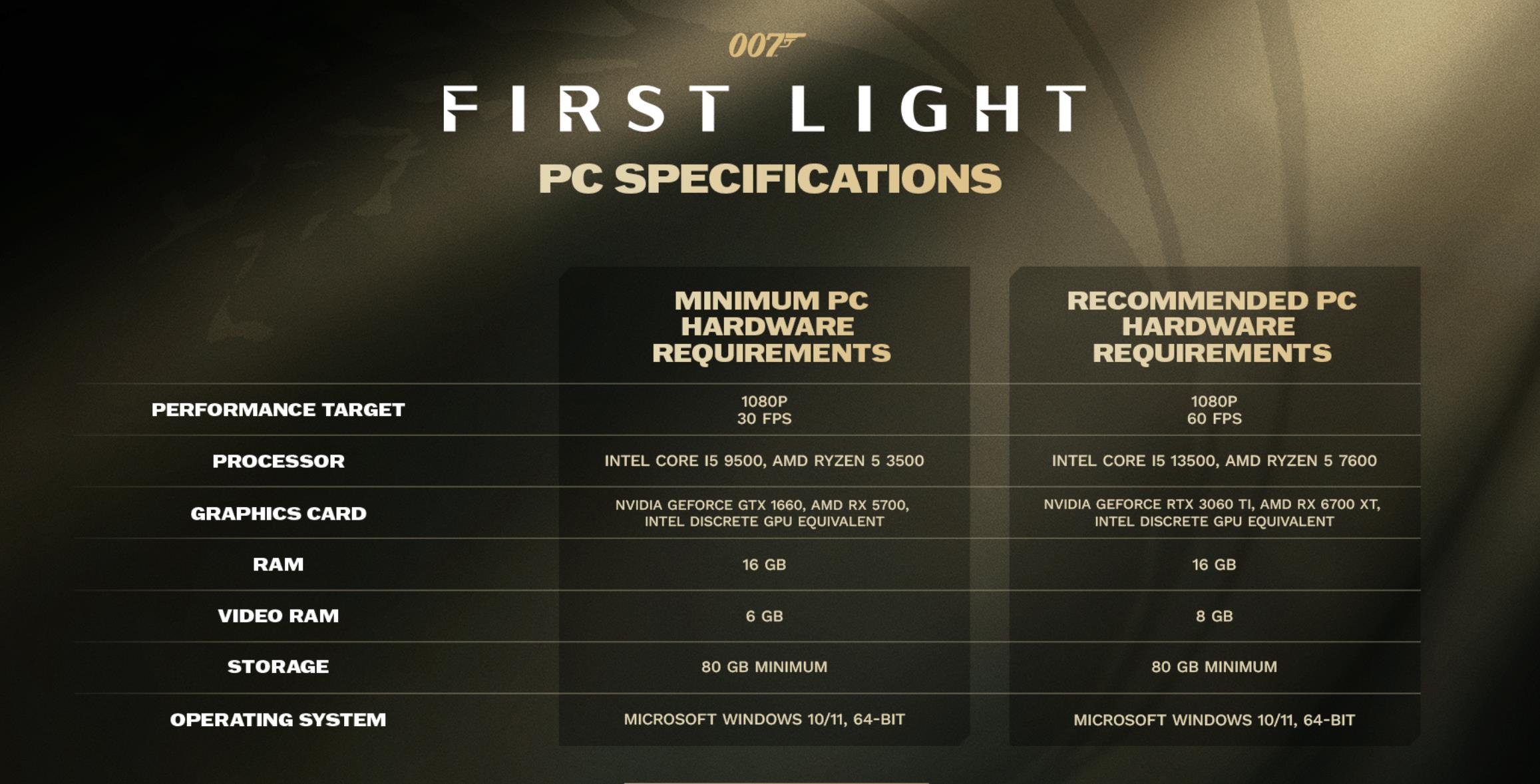 【《007:初露锋芒》官方修改PC配置,内存/显存要求有所降低】IO Interactive此前公布的《007:初露锋芒》PC配置中——32GB的内存要求让不少玩家感到震惊。官方今日发布了新的配置表,澄清此前错误源于内部沟通失误,并为此向玩家致歉。经过全面复核与额外测试后,推荐内存已从32GB更正为16GB,显存从12GB降至8GB。最低配置中的显存和CPU要求也有所降低,具体如下(更多性能目标将在游戏上市前夕公布):