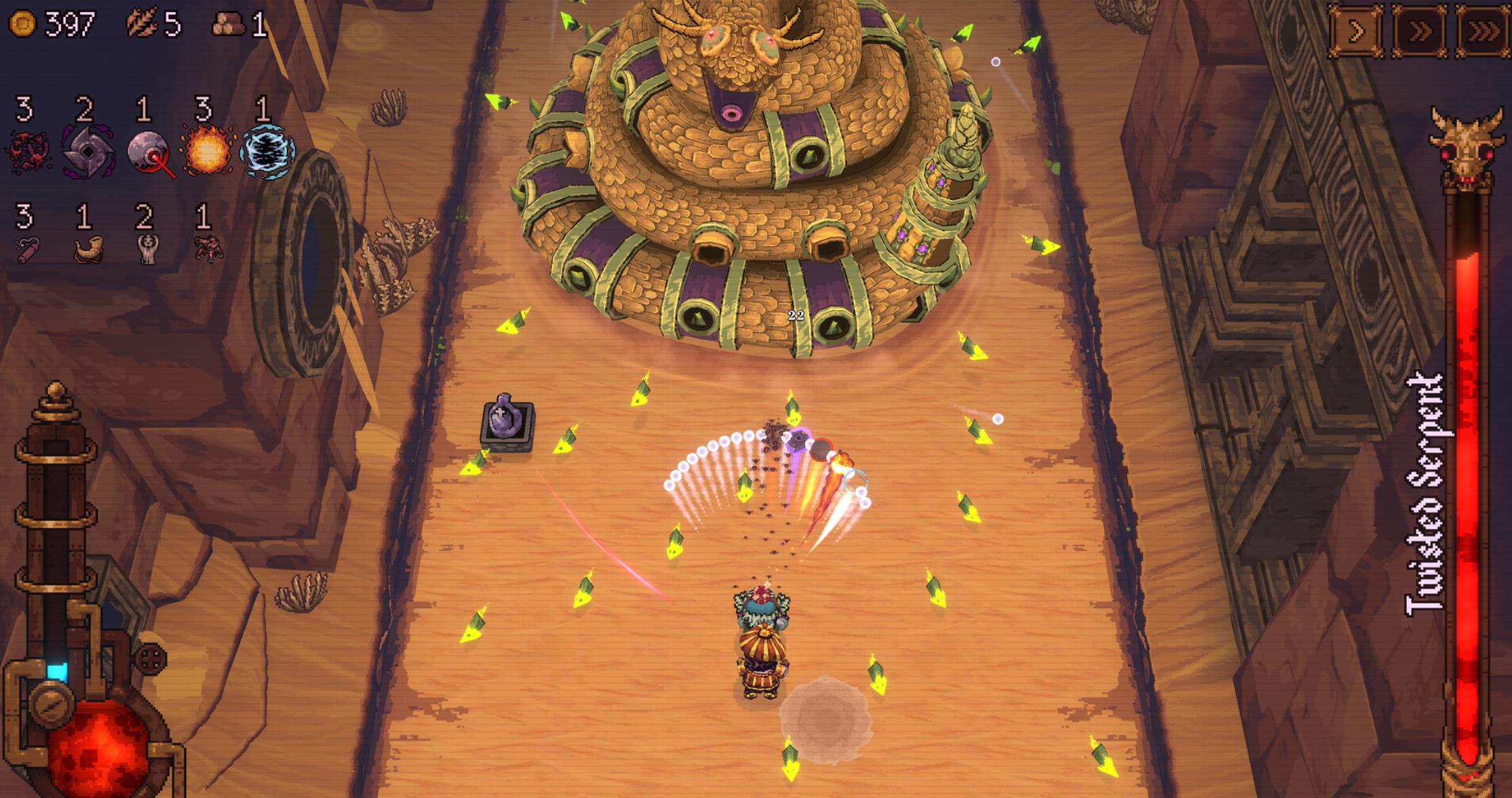 《球比伦战记》是一款奇幻背景的快节奏roguelite游戏,单场战斗中玩家需要通过发射弹珠来攻击敌人同时躲避来自敌人的弹幕攻击,同时尝试各种战斗组合。战斗后通过城镇建设等解锁新角色、新资源等。