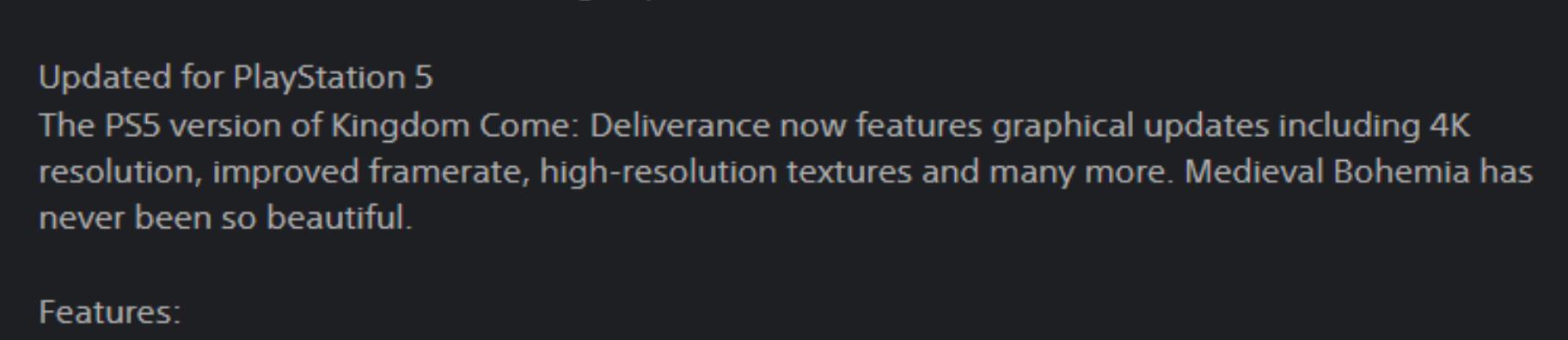 PS商店疑似泄露PS5版《天国:拯救》信息,支持4K与更高帧数