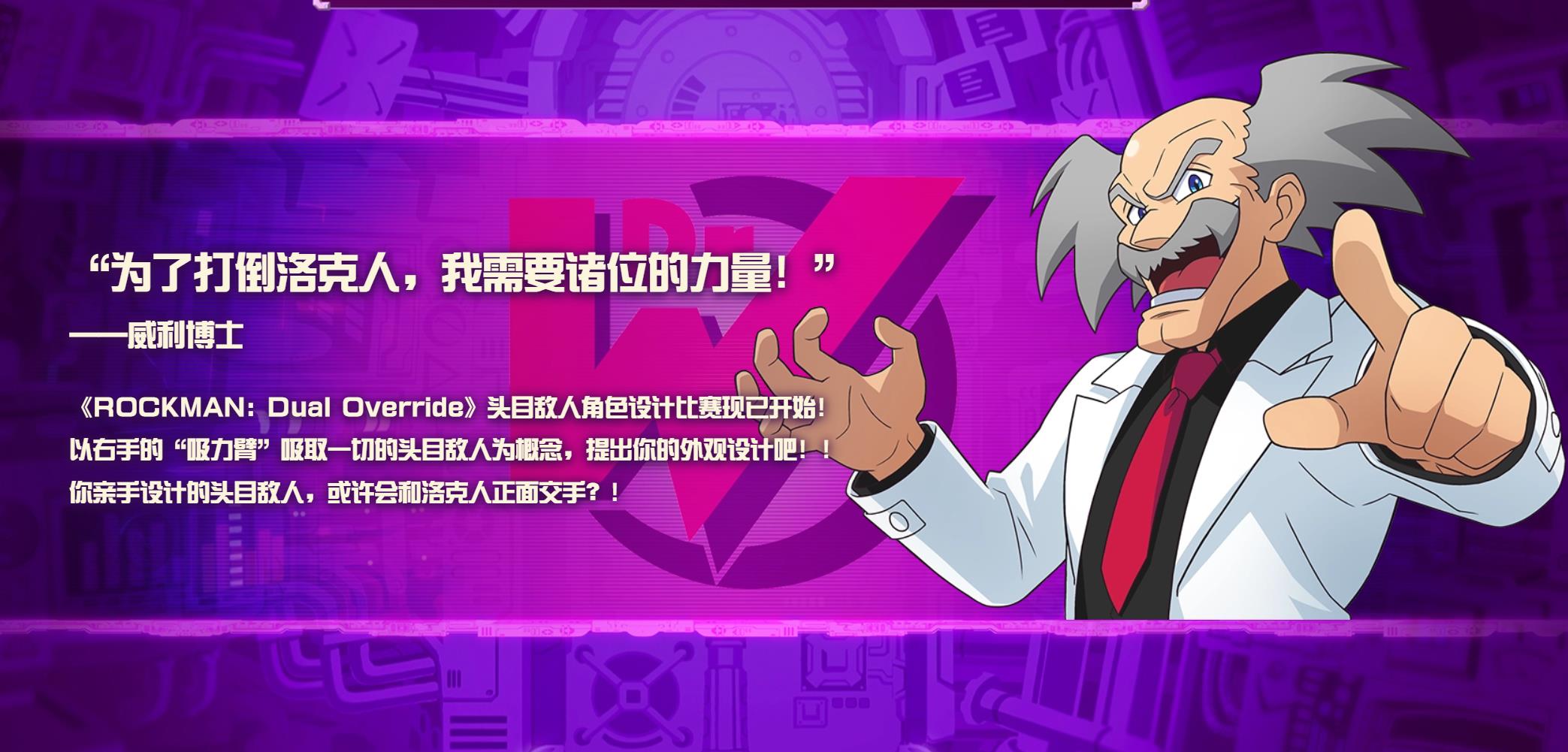 目前设计大赛第一轮评选已经结束(由Capcom员工精选的20件优秀作品,详见附图),第二轮评选为玩家投票,目前已经开始,截止日期到2月6日。《洛克人:Dual Override》将以系列第12部作品的身份登场,预计2027年发售。游戏登陆平台包括NS2/NS/PS4/PS5/Xbox/Steam,支持中文。