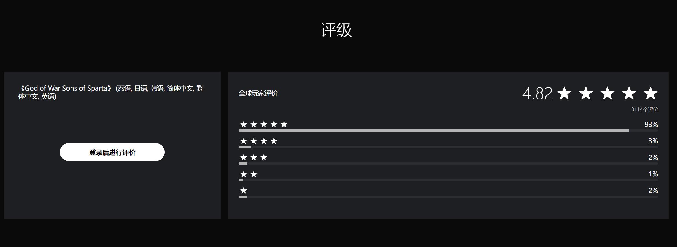 《战神:斯巴达之子》PS商店玩家评分4.82,挑战模式支持双人游玩