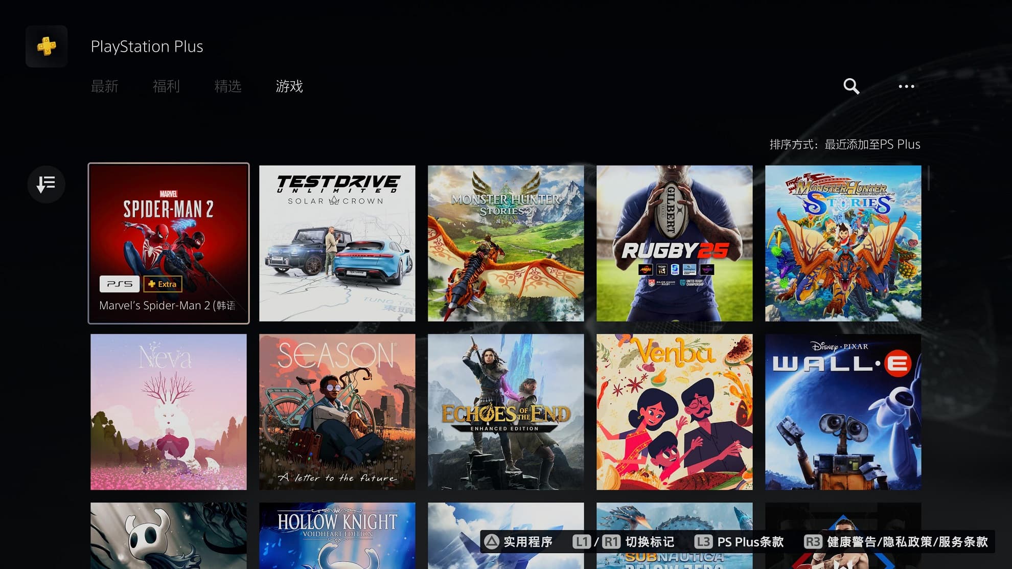 【2026年2月PS+2/3档新增游戏现已上线】2026年2月份的2/3档会员库新增游戏现已在PS HK商店中上线。 2档新增游戏 《漫威蜘蛛侠2》 《无限试驾:太阳王冠》 《Neva》 《寄梦远方》 《怪物猎人物语2:破灭之翼》 《怪物猎人物语》 《薇妮巴一家(Venba)》 《末日的回声:增强版》 《Rugby 25》 3档新增游戏 《机器人总动员》 最后的游戏机会 《机动战士高达:激战任务:代号妖精》
