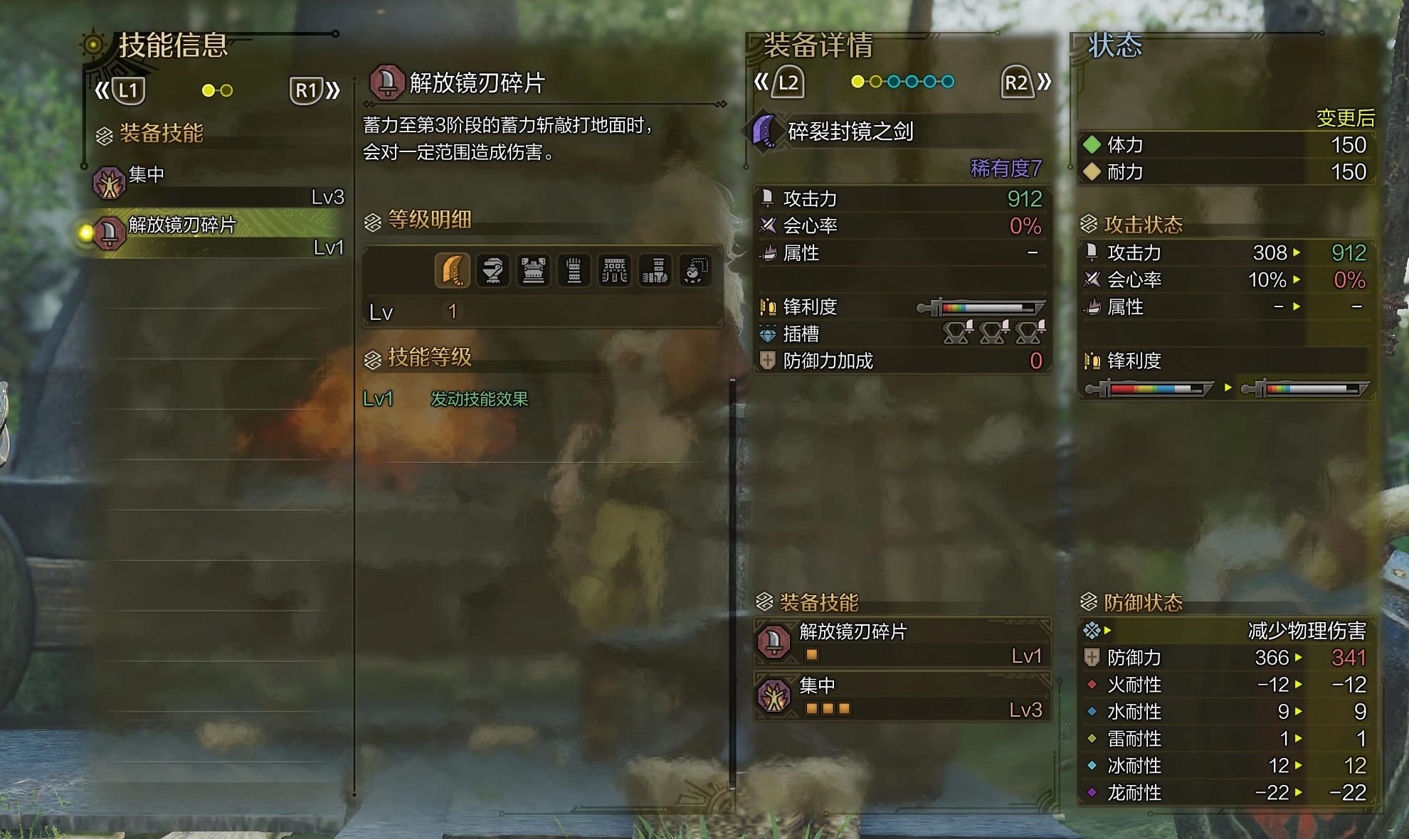 此次更新未有新怪登场,但带来了新武器“碎裂封镜之剑”。这把无属性大剑拥有着超长的白色锋利度,并带有集中3和解放镜刃碎片技能(蓄力至第3阶段的蓄力斩敲打地面时会对一定范围造成伤害)。