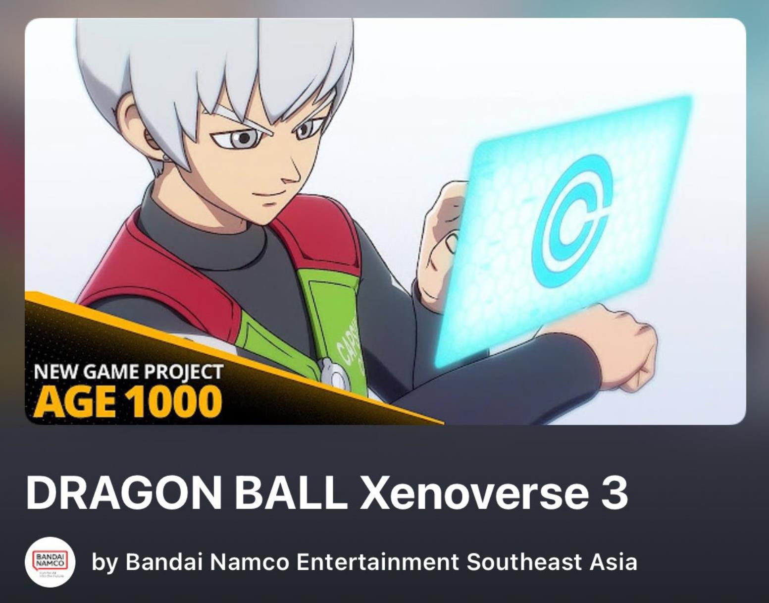 【万代南梦宫疑似泄露新作《龙珠:超宇宙3》】龙珠官方在上月举行的“龙珠元气节”期间公布了新项目《AGE 1000》,不过有关这款游戏的具体细节尚未揭晓。今日万代南梦宫东南亚官方频道播放列表中出现了该作的预告片,根据封面图显示“AGE 1000”正是《龙珠:超宇宙3》。虽然相关内容迅速被删除,不过还是被眼尖的玩家发现并截图保留。这也几乎坐实了这款备受期待的格斗游戏续作的存在。根据之前的信息显示,《AGE 1000》将于2027年推出,更多信息预计会在4月19日~20日举行的“Dragon Ball Games Battle Hour”上公布。