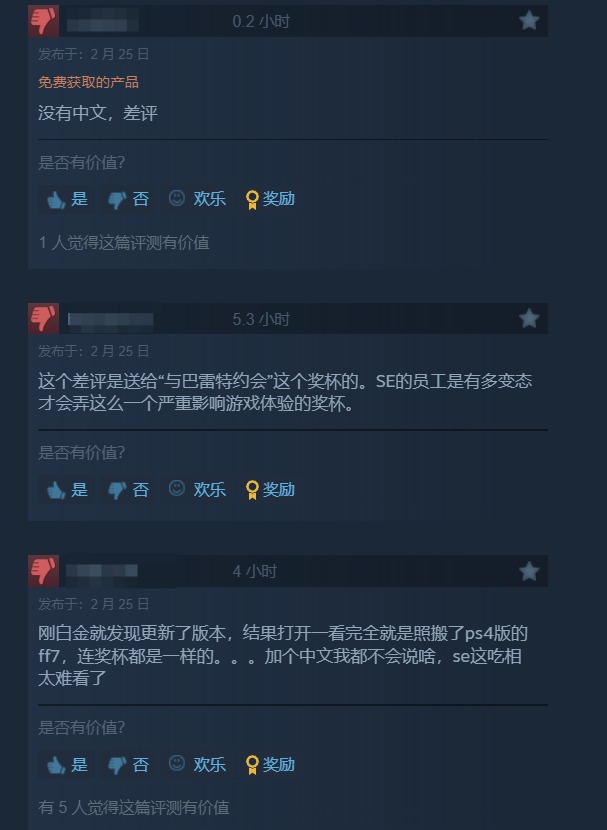 新版《最终幻想7》Steam上评价“褒贬不一”,存档不通用且不支持中文