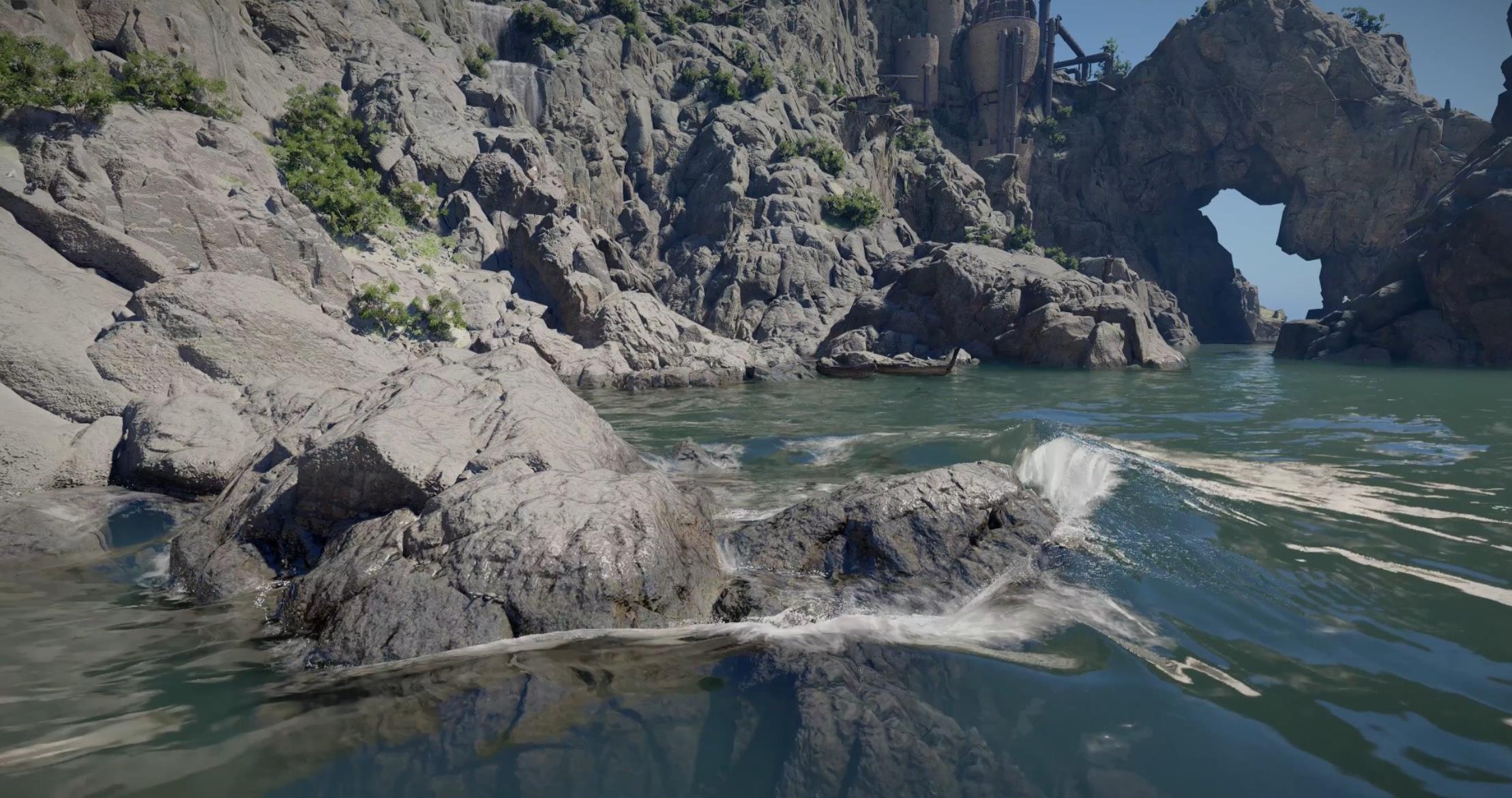 报告指出,《红色沙漠》支持实时光线追踪全局光照(RTGI),游戏室内外环境光照效果自然逼真。动态昼夜、天气系统与环境互动丰富,让开放世界显得尤为生动。水面与河流效果真实、具有体积感,远景树木、植被和环境动画也保持高度细致。此外,游戏还具备物理驱动的环境破坏系统。