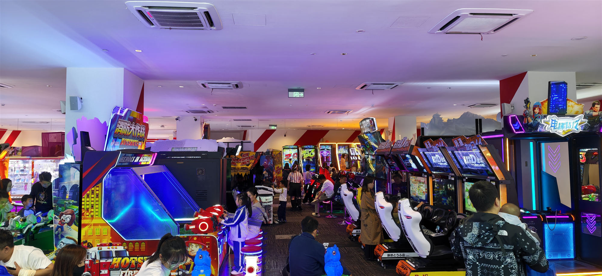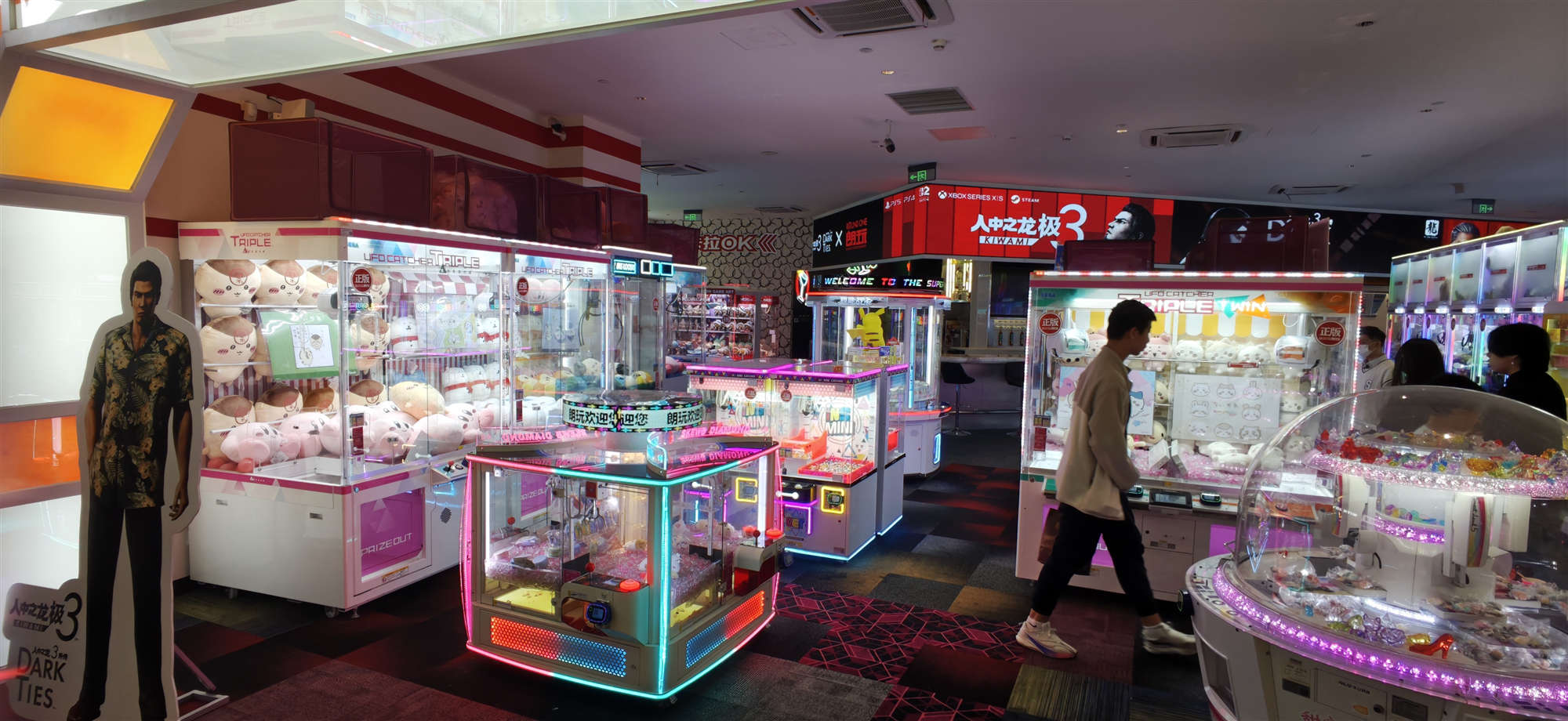 作为联动的主要IP,整个店内的陈设首当其冲的当然还是铺天盖地的主题滚动屏。从踏入店内的那一刻起就被环绕全场的游戏登场人物充斥着眼球,而此次联名的主题限定的娃娃机,堂岛之龙趴地起飞的姿势令人忍俊不禁。除了本次联名的《人中之龙》IP外,店内还有诸多小朋友们驻足围观的卡牌街机以及其他一些游戏IP的街机体验。