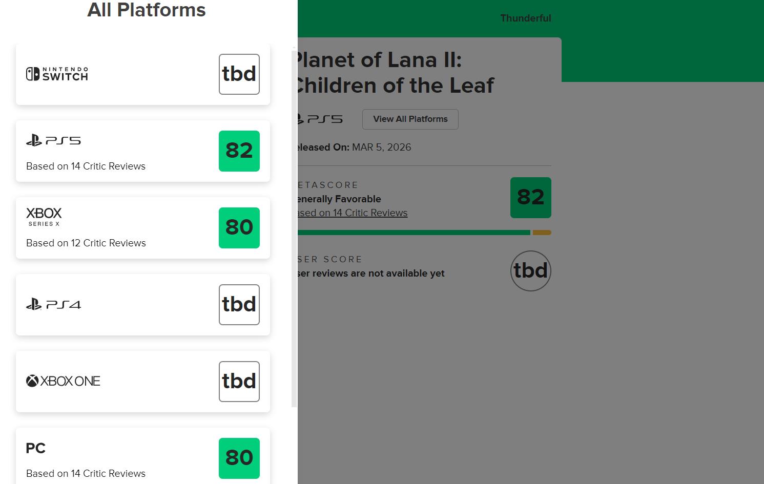 【《拉娜之星2》MC媒体均分82,主机平台运行规格揭晓】电影式解谜冒险游戏《拉娜之星2》媒体评测现已接近。截至目前,本作在MC上PS5版均分82(暂由14家给出),Xbox Series版80(暂由12家给出),PC版80(暂由14家给出)。部分媒体评分如下: