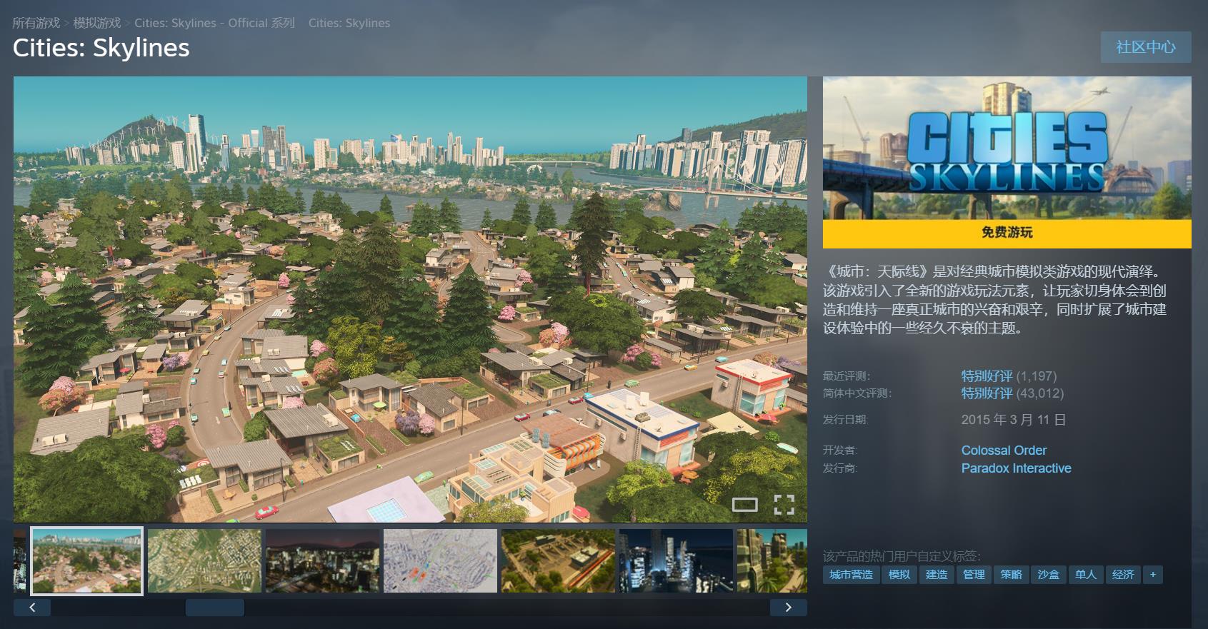1、《城市:天际线》:由Colossal Order开发的城市模拟类游戏,玩家可从零规划和建设大都市,体验高度自由且富有策略性的城市管理。3月13日前,折后价13.8元(史低)。