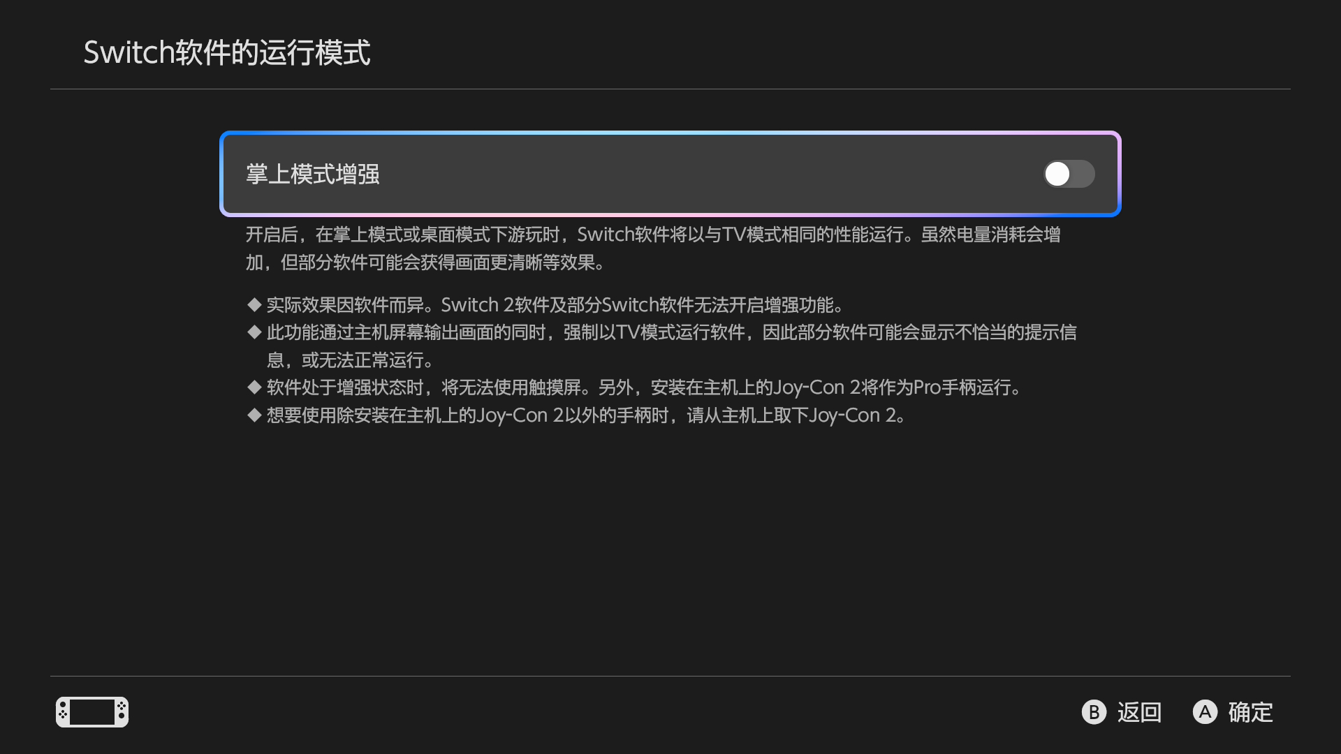 【史诗级更新!实测部分NS2掌机游玩NS1游戏表现进步明显】任天堂在今天为Switch 2推送了最新的22.0.0系统更新。本次更新的最大亮点,是提供了在Switch 2掌机模式下运行Switch 1版本游戏时,可额外开启的增强功能。在系统设置里打开“掌上模式增强”选项后,原本只能以Switch 1掌机规格运行的游戏,现在能够以Switch 1底座规格运行。