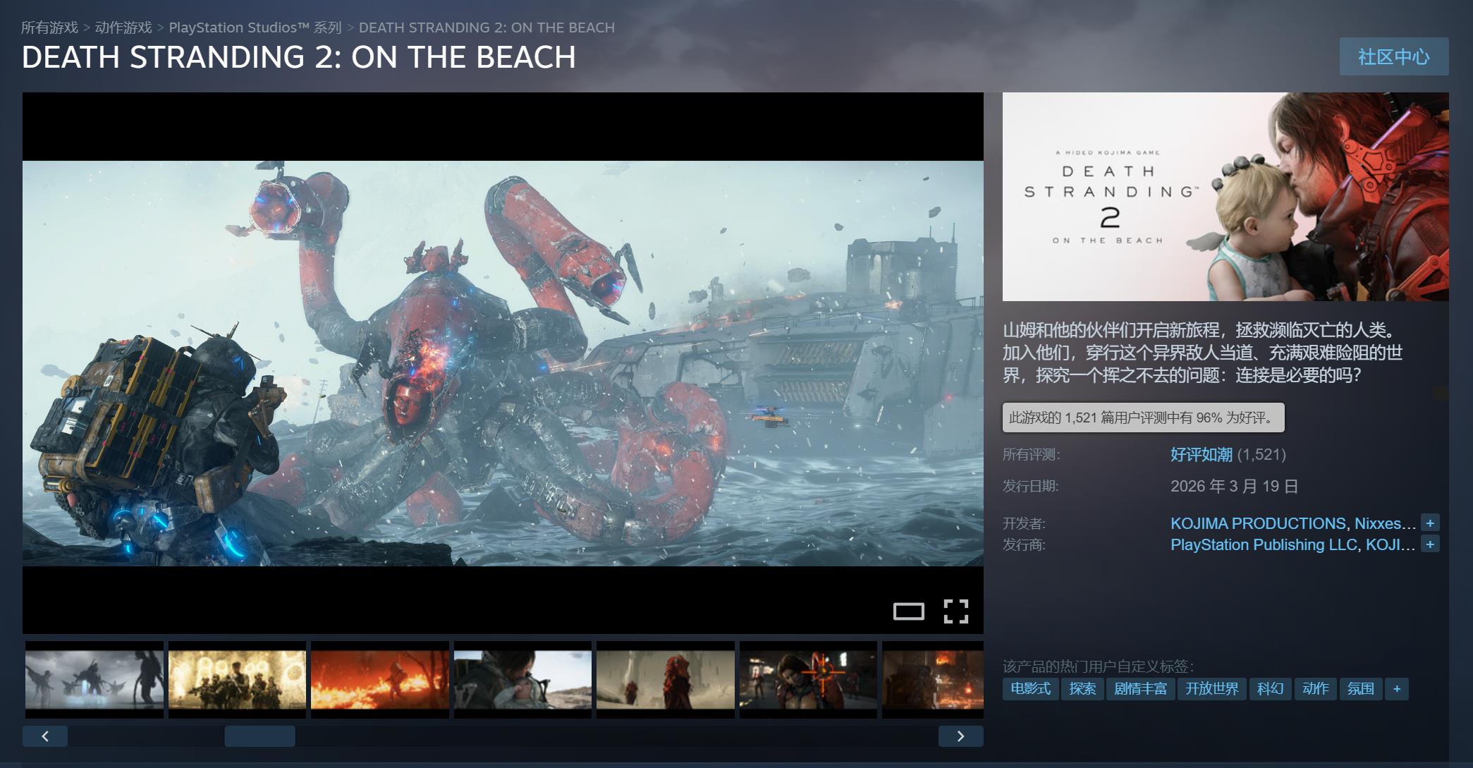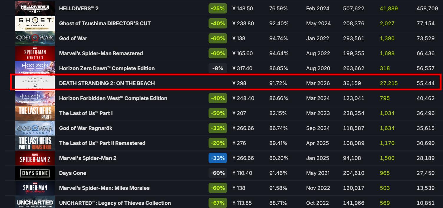 《死亡搁浅2》Steam上玩家“好评如潮”,峰值人数达5.5万