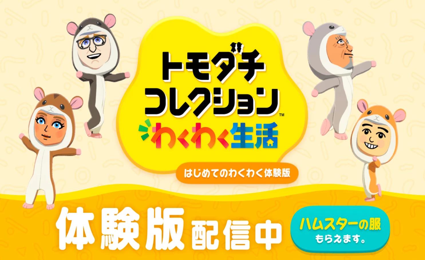 【《朋友收集:梦想生活》体验版今日上线】任天堂宣布《朋友收集:梦想生活》体验版已于今日上线。体验版可游玩本作序章内容,存档可在正式版中继承。参与试玩的玩家还能在正式版中获得礼物“仓鼠服装”。 《朋友收集:梦想生活》是一款生活模拟类游戏,玩家可使用自己制作的Mii角色们在小岛上自由自在地生活。本作支持中文及“任亏券”兑换,游戏将于4月16日在NS上推出(NS2可通过向下兼容游玩)。