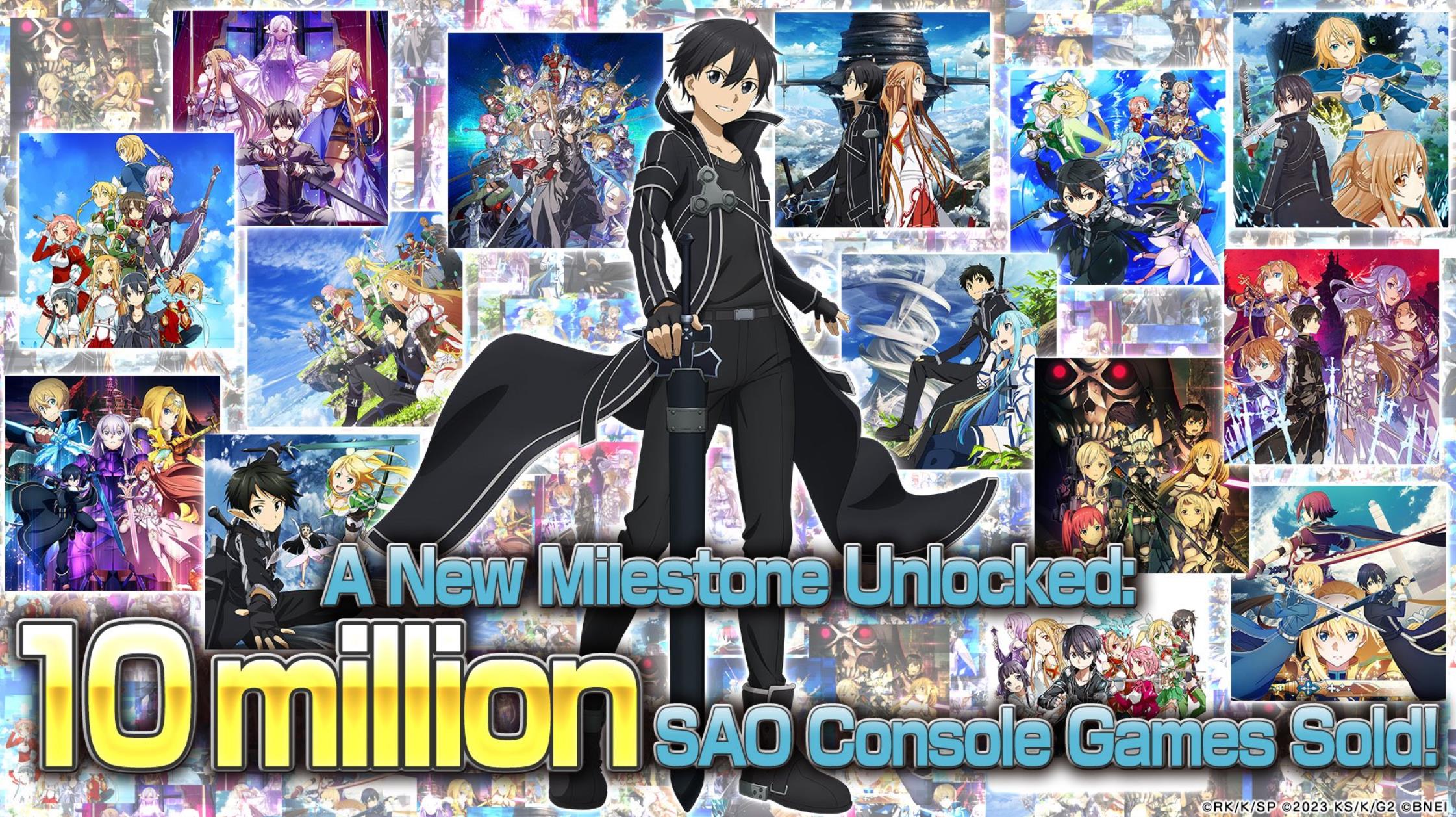 【《刀剑神域》系列游戏总销量突破1000万】《刀剑神域》官方宣布,该系列主机游戏全球累计销量已正式突破1000万份!为纪念这一重要的里程碑,官方将于4月2日举行特别节目来新作《艾恩葛朗特:回荡新声》的最新情报。