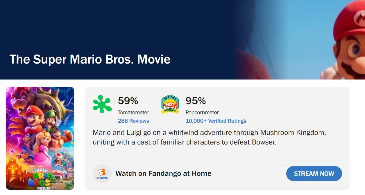 《马力欧银河大电影》首日票房破纪录!烂番茄爆米花指数91%