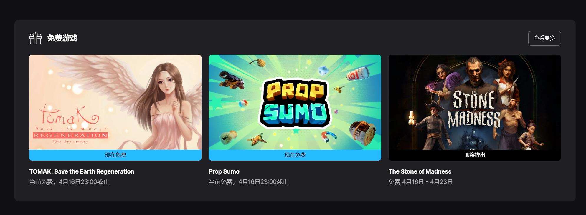 【Epic喜+2】派对动作游戏《Prop Sumo》和恋爱模拟游戏《TOMAK: Save the Earth Regeneration》现已可在Epic商店中免费领取,2026年4月16日23:00截止,领取后永久入库。下周免费游戏为《The Stone of Madness》。