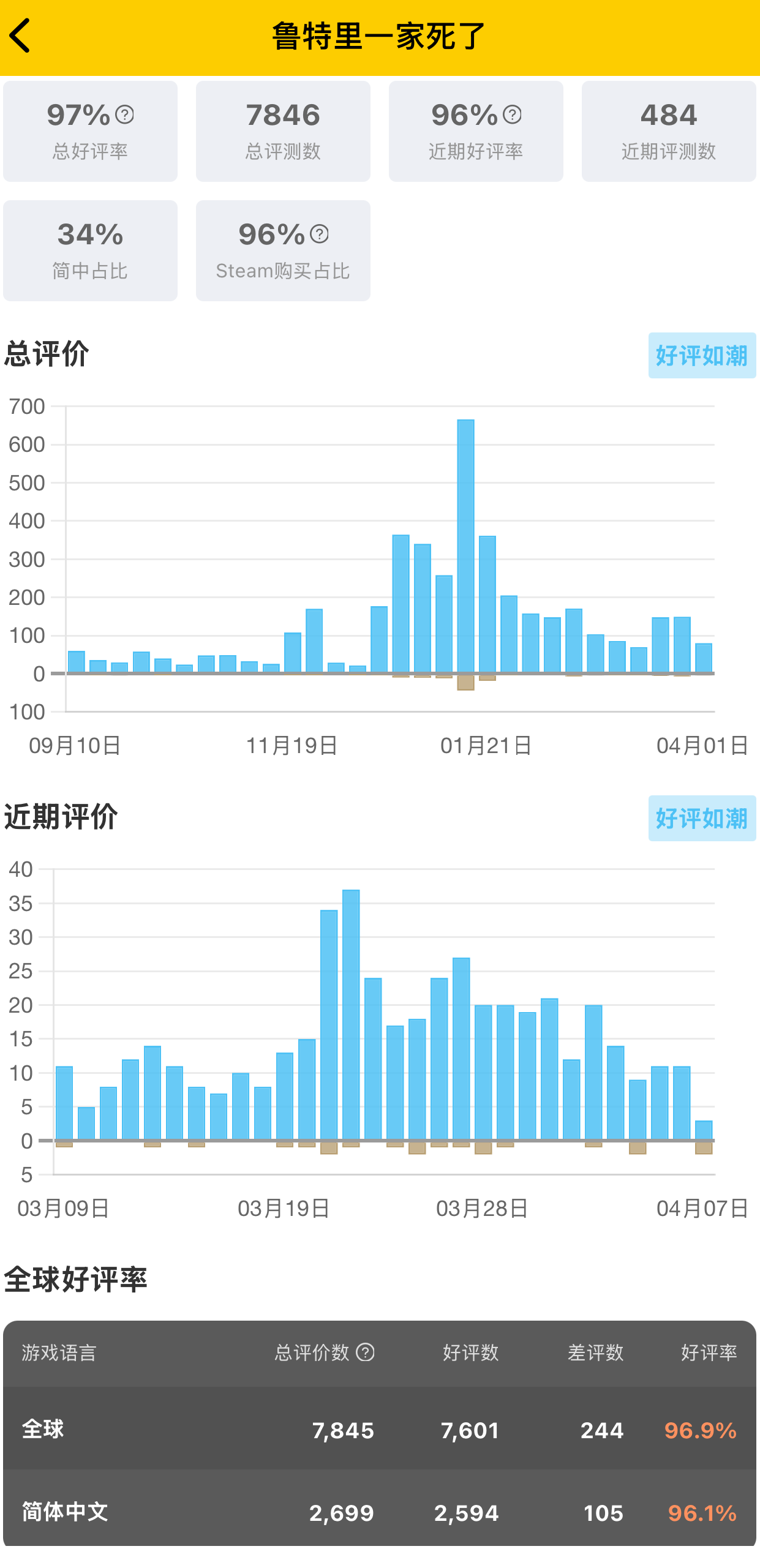 【《鲁特里一家死了》追加中文配音!开发商确认新作首发支持中文】人气解谜游戏《鲁特里一家死了》近期追加了中文普通话配音,并作为免费内容向所有玩家开放。本作于去年1月登陆Steam平台,同年12月追加中文后迎来了显著的销量增长。目前这款游戏在Steam上累计超过7800篇评测,玩家好评率96%,整体为“好评如潮”。国区评测数2699条,好评率同样为96%。开发商Evil Trout确认,即将推出的新作《加利宅邸的悬案(The Incident at Galley House)》将会在首发推出时同步支持中文。
