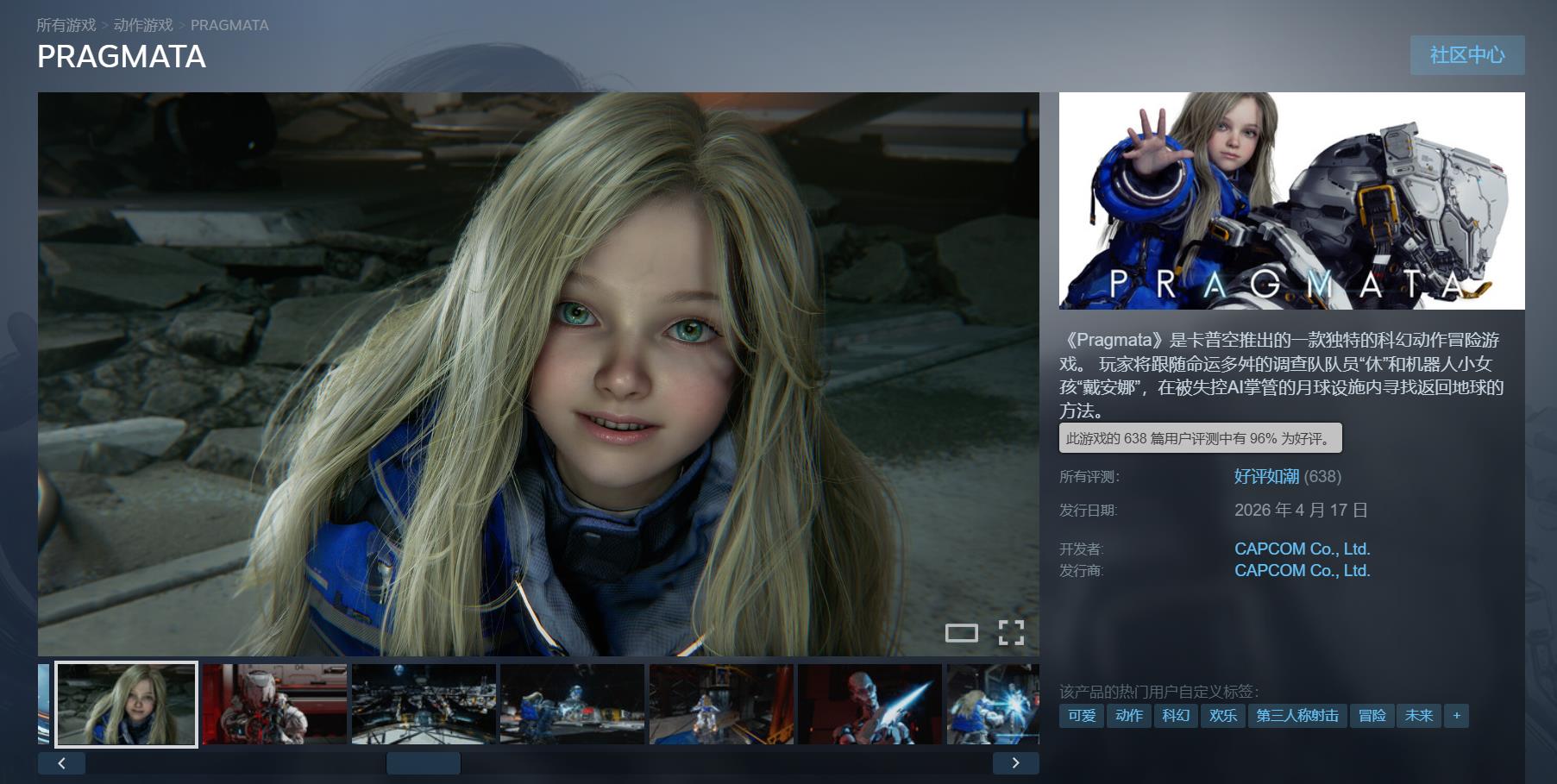 【Capcom新作《识质存在》今日上线!Steam玩家口碑“好评如潮”】由Capcom所带来的科幻动作冒险游戏《识质存在(PRAGMATA)》今日正式发售。截至目前,本作在Steam上已有638篇评测,玩家好评率96%。国区323篇,好评率94%。