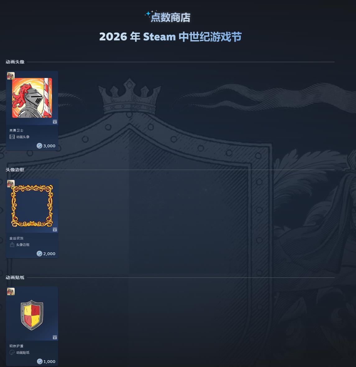 【Steam“中世纪游戏节”活动今日开启,众多游戏限时促销中】Steam今日开启了“中世纪游戏节”活动,截止时间到4月28日凌晨1点。期间大量相关题材游戏迎来优惠折扣,人气作品包括《天国:拯救2》《王国风云3》《黑暗之魂:Remastered》等。此外,点数商店也同步上新本次活动主题物品,包括动画头像“英勇卫士”、头像边框“金丝纹饰”以及动画贴纸“钢铁护盾”,玩家可使用点数进行兑换。