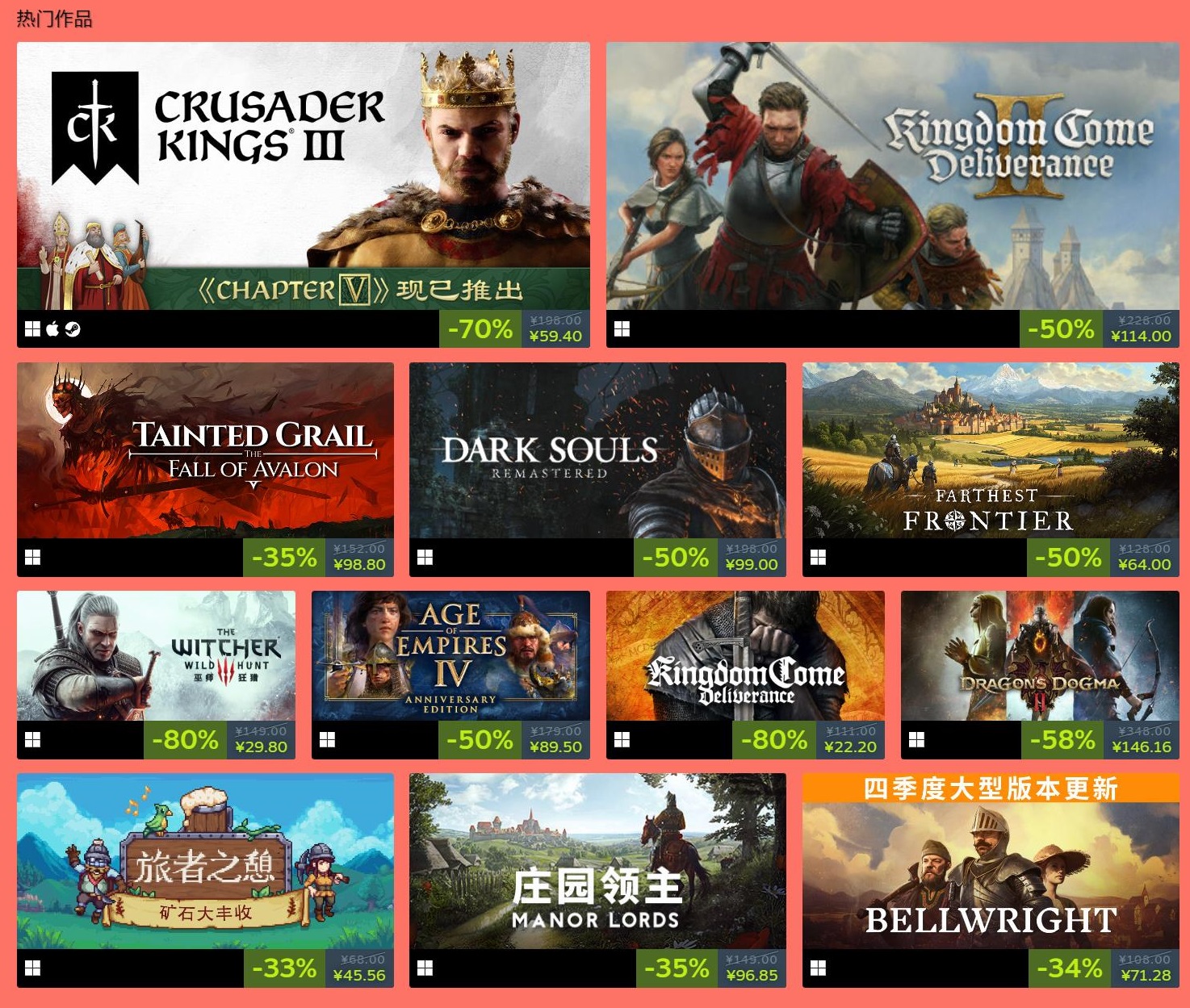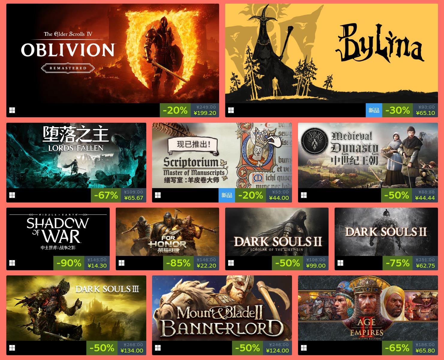 Steam“中世纪游戏节”活动今日开启,众多游戏限时促销中