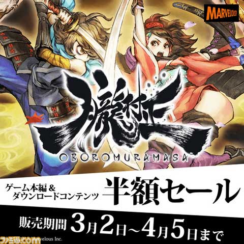 PSN日服商店今日推出《胧村正》游戏本体与DLC限时半价活动,在3月2日~4月5日期间,PSV游戏《胧村正》the Best优惠售价1500日元、DLC元禄怪奇谭“化猫-津奈缶猫魔稿-” /“一揆-大根义民一揆-”/“白蛇-七夜祟妖魔忍传-”/“鬼娘-角隠女地狱-”均售价250日元。友情提示PSV《胧村正》为港/日服3月会免游戏,但4款打包只售1000日元的DLC还是十分划算的。