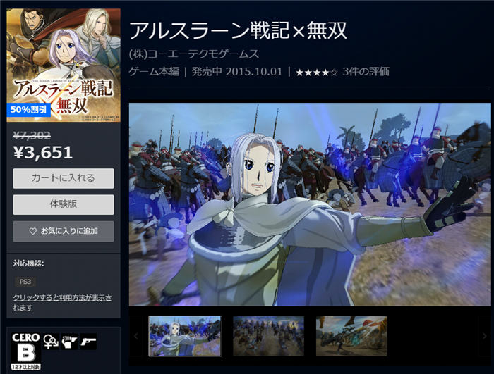 为了庆祝7月新番“亚尔斯兰战记:风尘乱舞”的放送,日服PlayStation Store将于2016年7月12日~8月22日期间举行PS4/PS3游戏《亚尔斯兰战记X无双》的半价促销活动,在此活动期间PS4/PS3游戏《亚尔斯兰战记X无双》售价3651日元。
