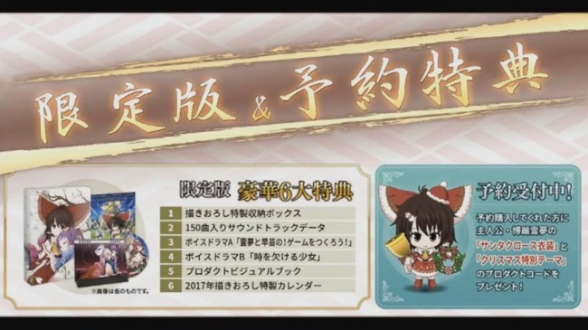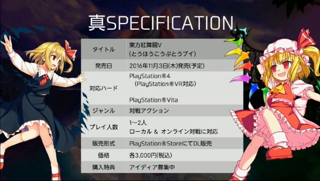 在昨晚的东方Project新作发表会上,新作《东方深秘录》宣布将于12月8日登陆PS4平台,初回特典为原声音乐CD,并将推出专用的主题摇杆;PS4/PSV《不可思议的幻想乡 TOD -RELOADED-》实体版将于12月22日发售;PS4/PSV《东方红舞斗V》将于11月3日提供配信下载,并且PS4版还对应支持PS VR。