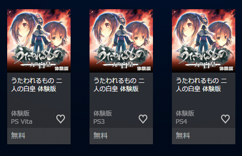 《传颂之物:二人的白皇》体验版目前已经上架日服PSN商店,玩家可以体验到《传颂之物:二人的白皇》的序章部分,PS4版下载容量为871MB、PS3版下载容量为790MB、PSV版下载容量为386MB。