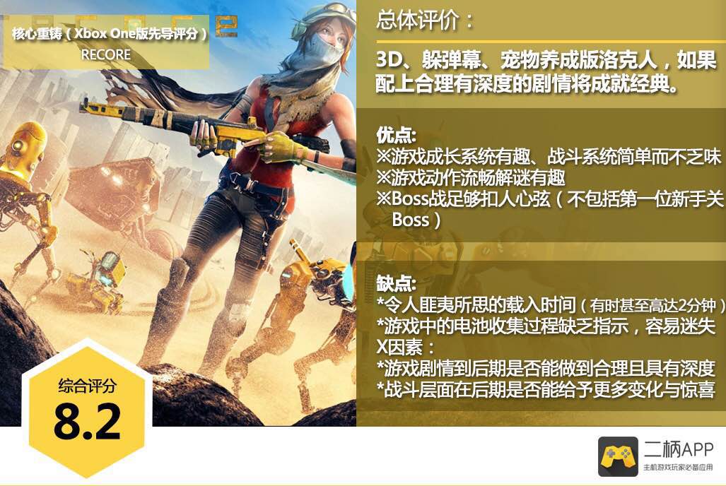《核心重铸》今日正式登录了Xbox One以及Win10平台,由于需要赶去参加东京电玩展,小编在体验了6小时后率先为大家给出了本作的预评分!更为详细的测评将于下周放出!总体来说本作素质优秀,但游戏后期的剧情以及系统尚未体验完整,游戏神秘的剧情以及系统在后期的表现将会直接影响到本作的最终评分。仅从游戏前6小时的体验来说,本作值得一试!