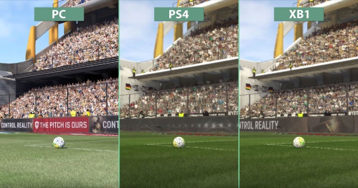 在主机玩家对《实况足球2017》各方面素质提升而感到高兴时,PC玩家也许对本作的表现很不满意,因为PC版的游戏画面依然差主机一大截!PC画面没有主机版的好,这是《实况足球》系列的传统了,玩家本来还抱有希望,希望今年的《实况足球2017》能够扳回一局。但从对比图来看,PS4和XboxOne版游戏具有很明显的细节和光效效果,PC版看起来仍旧好像是上个世代的水平。家用机版球员毛发更加真实,脸部还有汗水,而这些PC版竟然完全没有,更甚至PC版的草坪就好像是一层地板。