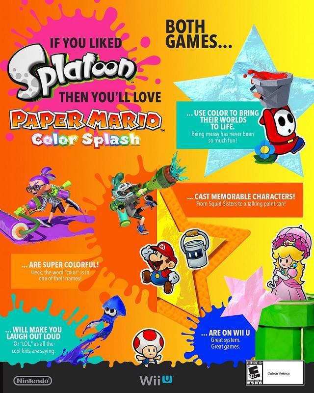 今日任天堂为《纸片马里奥:色彩喷涂》放出的宣传广告就写到:“如果你喜欢《喷射军团》,那你一定会喜欢《纸片马里奥》!