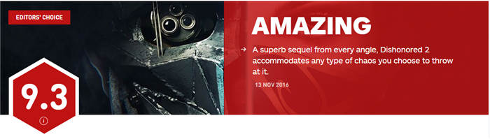 IGN今日公布了《羞辱2》的最终评分——9.3分