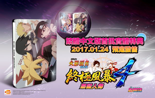 Bandai Namco亚洲今日宣布PS4《火影忍者疾风传:终极风暴4 慕留人传》首批将追加实体特典铁盒,此外还公布了最新中文版宣传视频(视频正在上传中,将在稍后带来)。