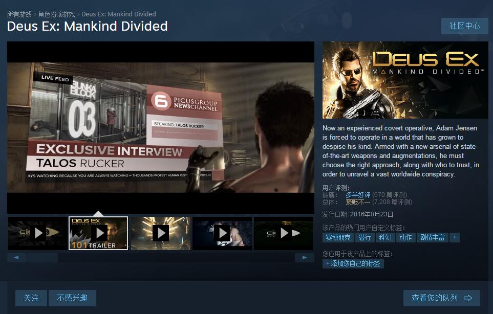 作为圣诞大促的前菜,《杀出重围:人类分裂》在Steam平台进行了降价促销。国区仅售52元也来到了历史最低价(此前最低80元)!如果你对于英语感到无力,不妨购买Steam版本。
