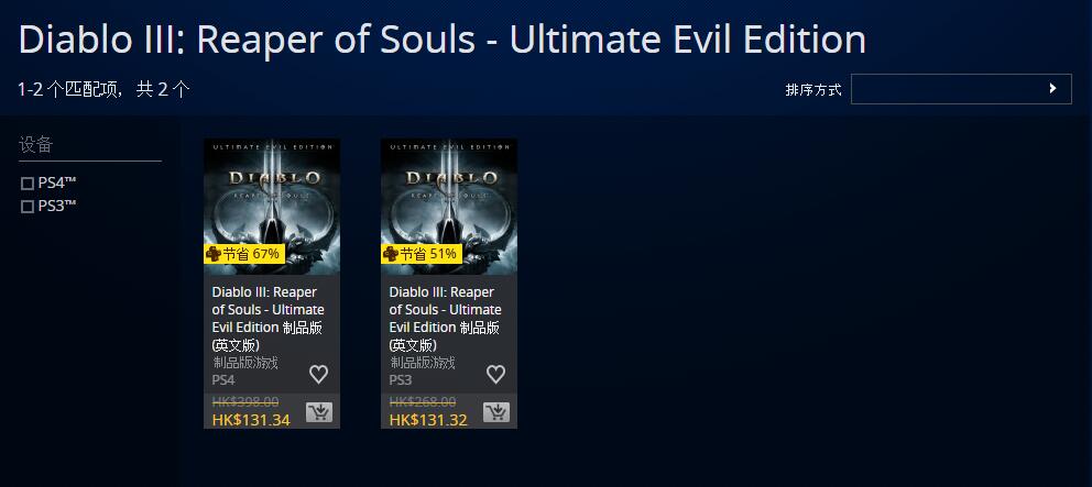 港服PSN《暗黑破坏神3:终极邪恶版》折扣,仅售131港币