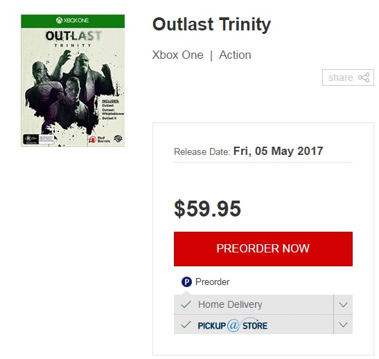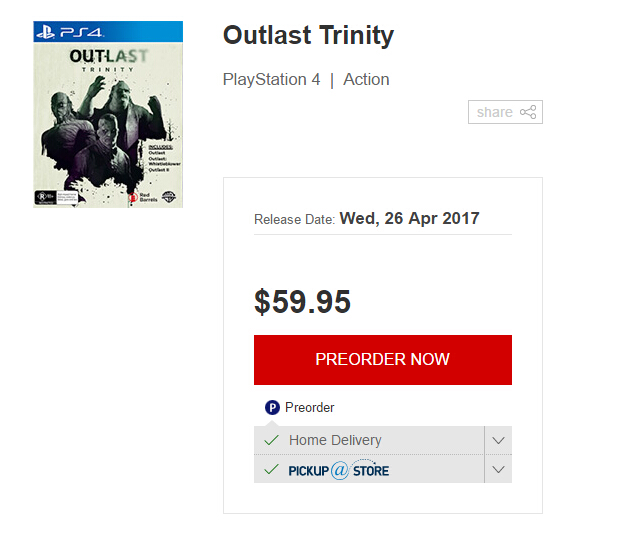 近日据澳大利亚购物网站EB games透露,包含《逃生》、《逃生:告密者》及《逃生2》在内的《逃生三部曲》实体版合集或将推迟至5月5日发售(原发售日为4月26日),不过该网站只修改了Xbox One版的发售日,PS4版本的发售日期并没有改变,目前官方尚未做出回应。