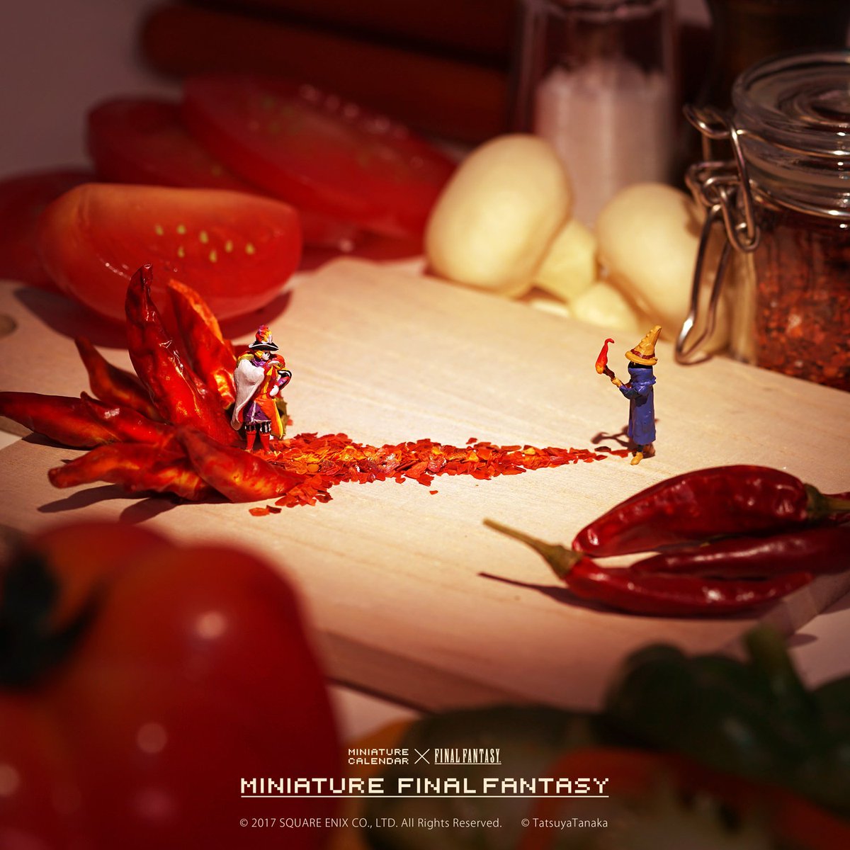 日本微缩摄影艺术家田中达也今日公布了其最新作品,此次田中达也利用PS2主机以及游戏光盘,完美再现了《最终幻想10》中泰达和尤娜在水中的经典场景!顺便为大家带来此前田中达也利用辣椒还原出《最终幻想9》角色“比比”使用火系魔法的场景(图3)