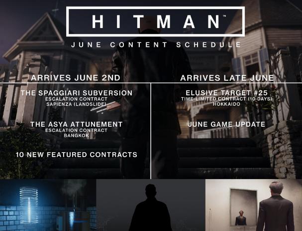 IO Interactive对《杀手》的支持并没有因为Square Enix的离开而停下来,今天IO Interactive公布了《杀手》六月的更新计划。在今天会有两个升级契约首先加入游戏,其中一个在萨皮恩扎,另一个在曼谷,玩家可通过完成这两个升级契约获得丰厚的奖励。另外还会有10个从玩家社区的挑选出来的特殊契约将陆续加入游戏。6月下旬IO Interactive还会公布第25个刺杀目标的详细信息,其他的更新内容也将在6月晚些时候公布。
