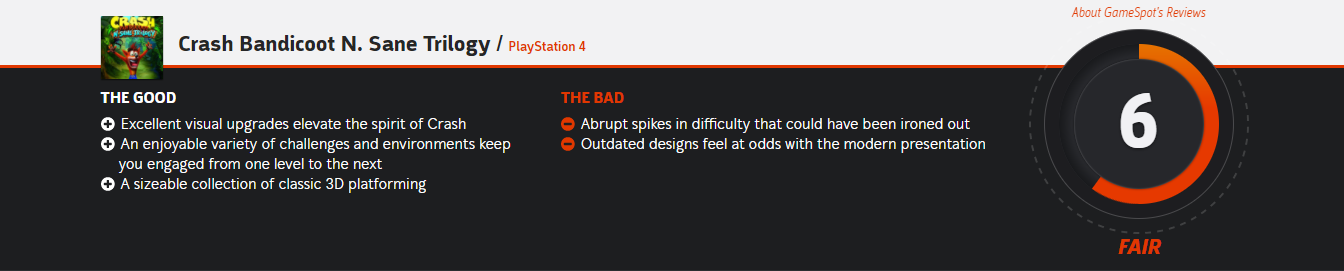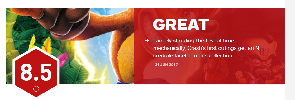 《古惑狼:疯狂三部曲》评分出炉,IGN—8.5分,GameSpot—6分
