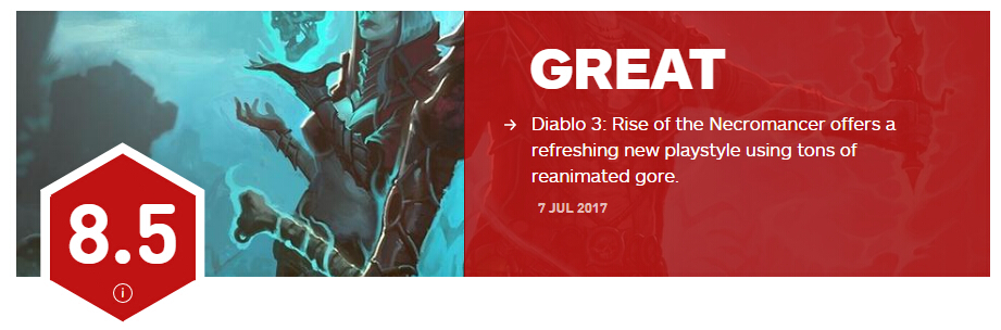 《暗黑破坏神3:死灵法师的崛起》IGN评分8.5分